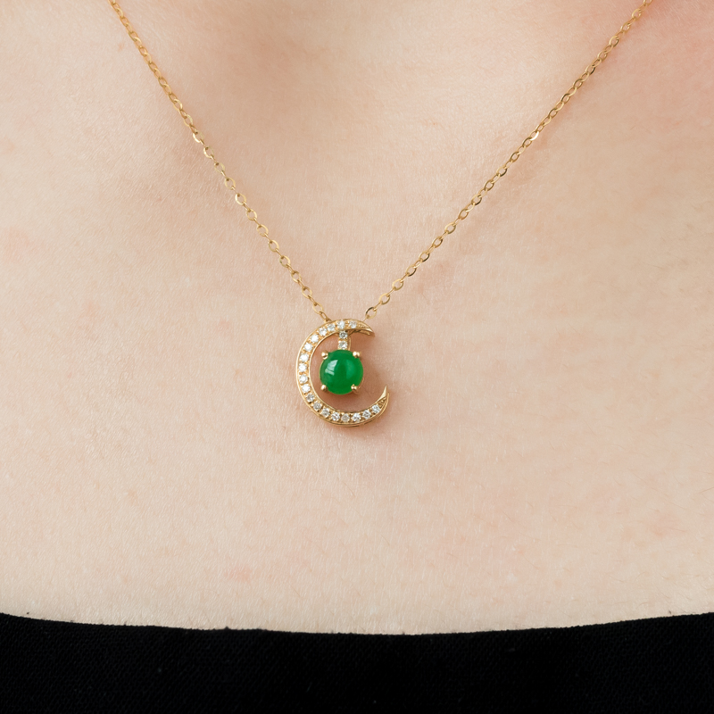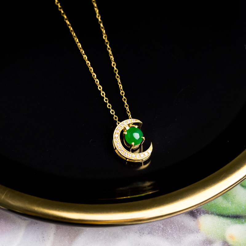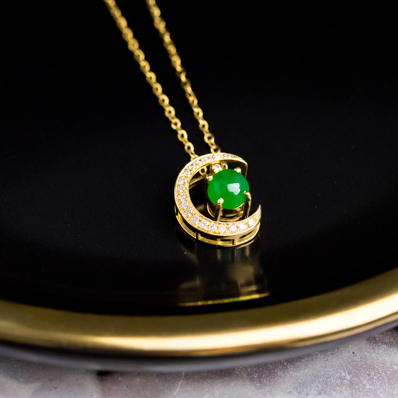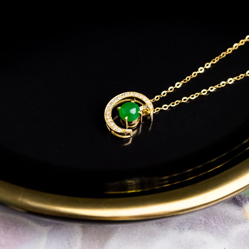 • 18K糯冰种翠绿翡翠项链
