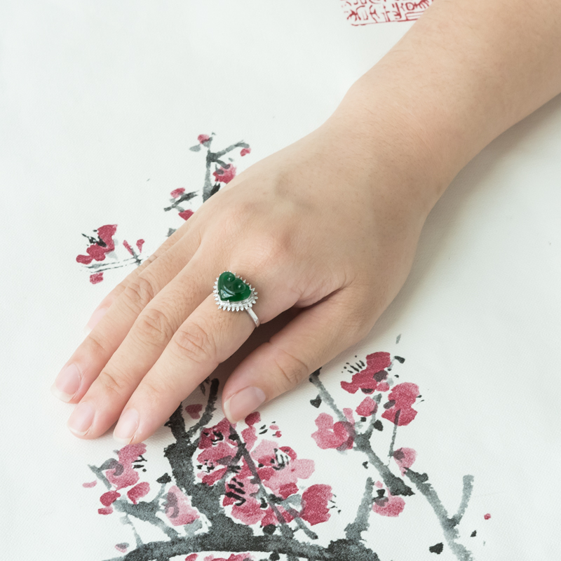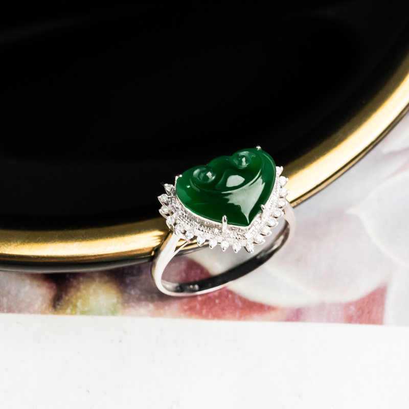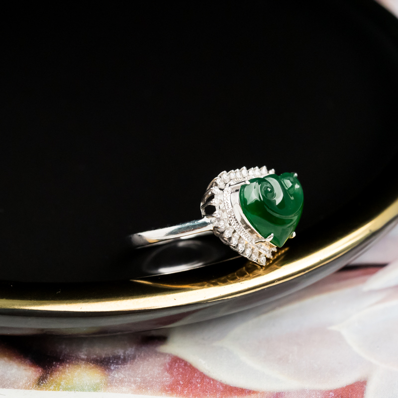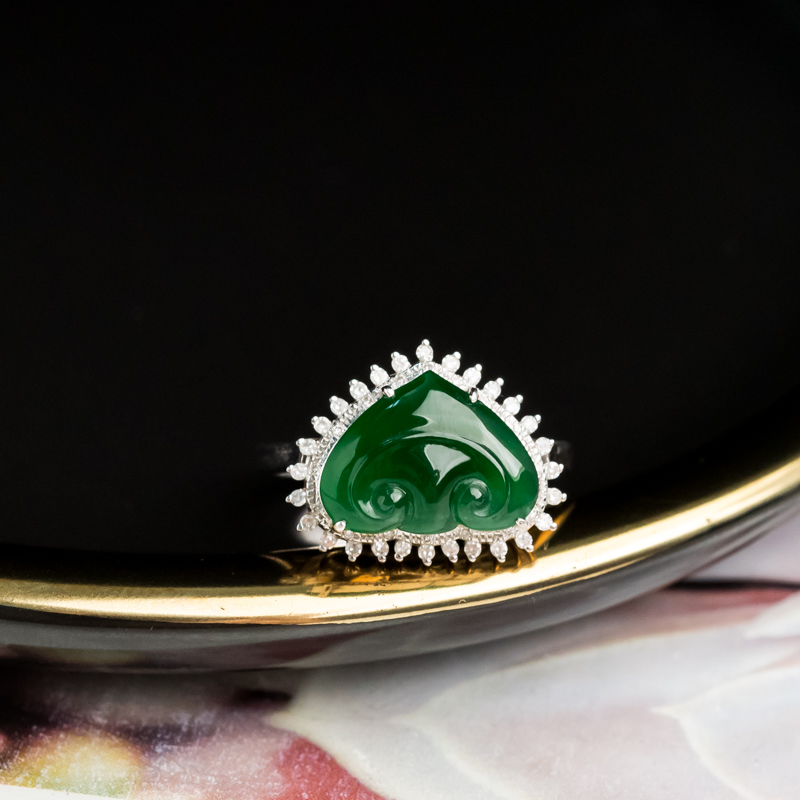 • [名  称] 18K糯冰种深绿翡翠如意戒指