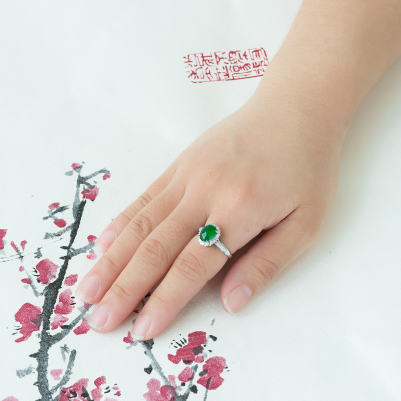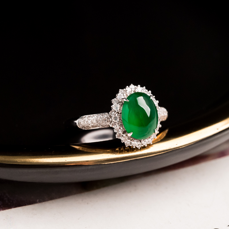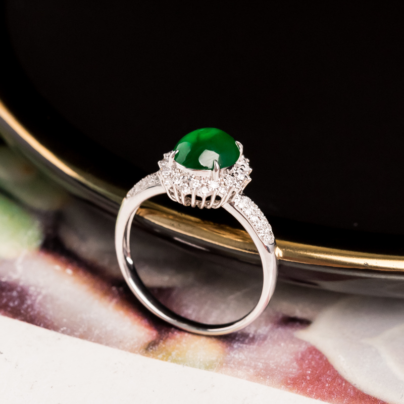 • 18K糯冰种翠绿翡翠戒指