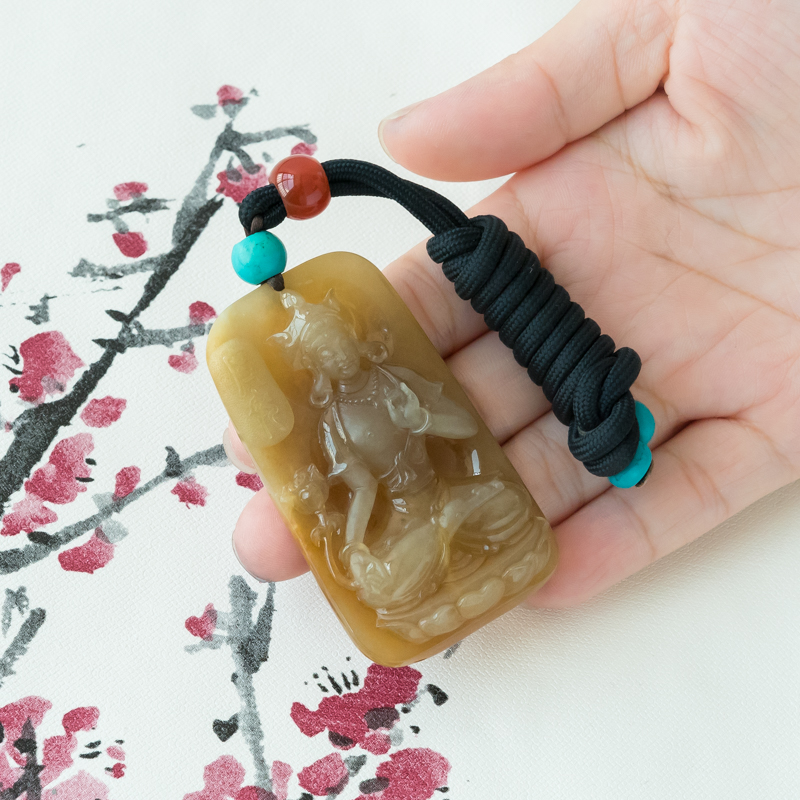 • [名  称] 糯冰种黄翡翡翠度母吊坠