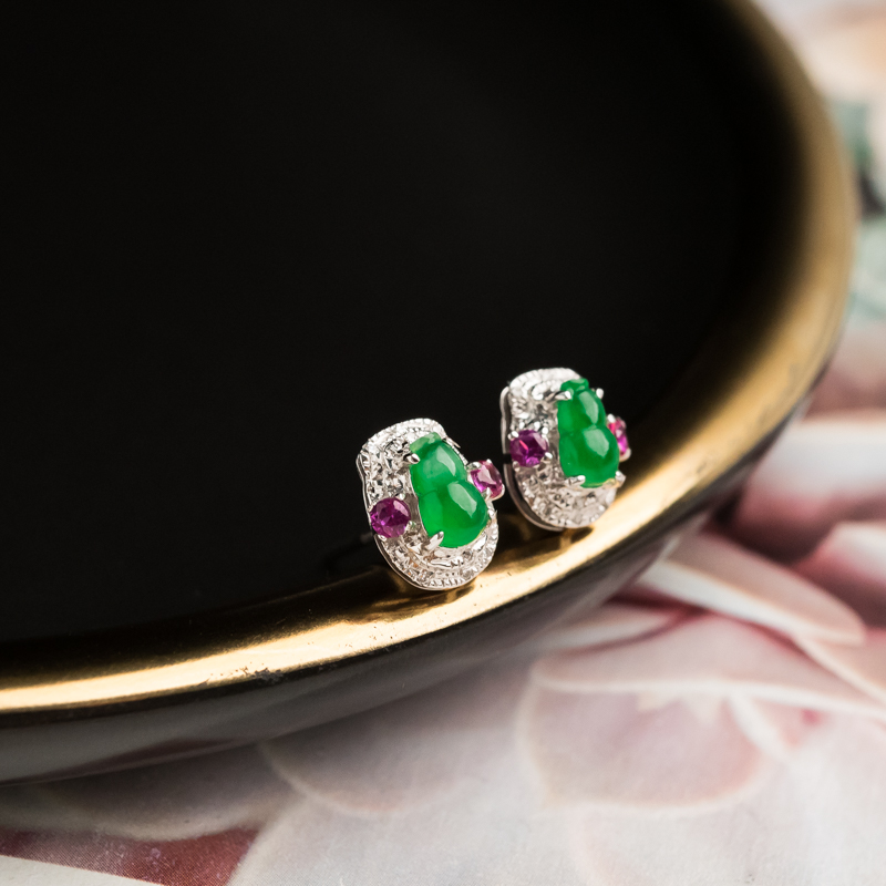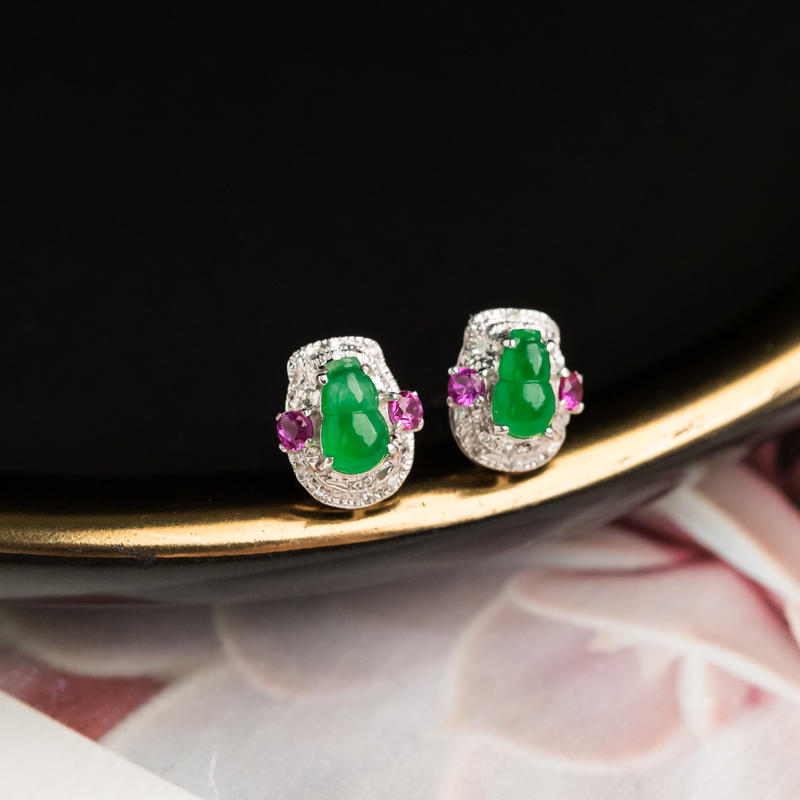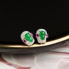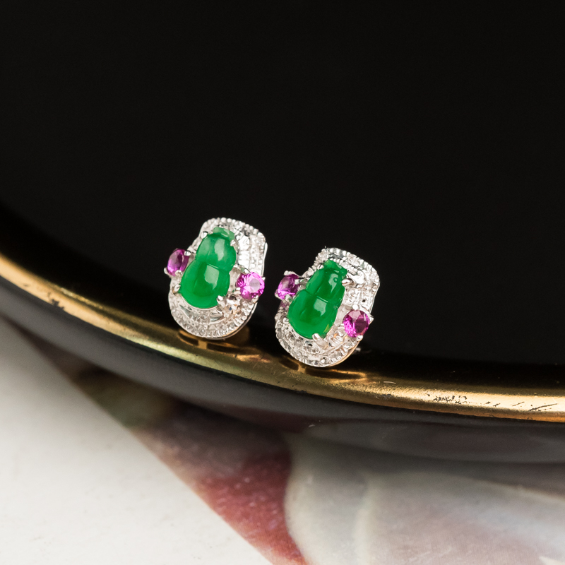 • 18K糯冰种翠绿翡翠福禄耳钉