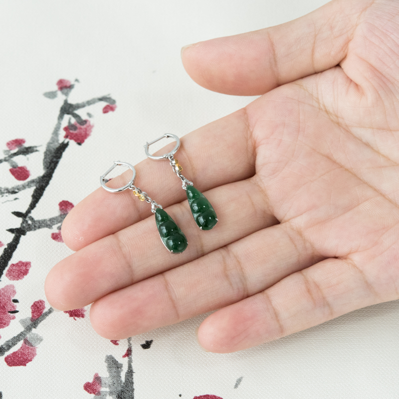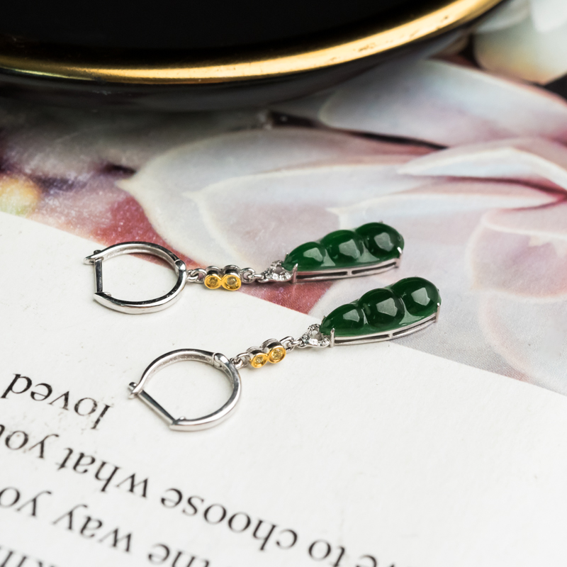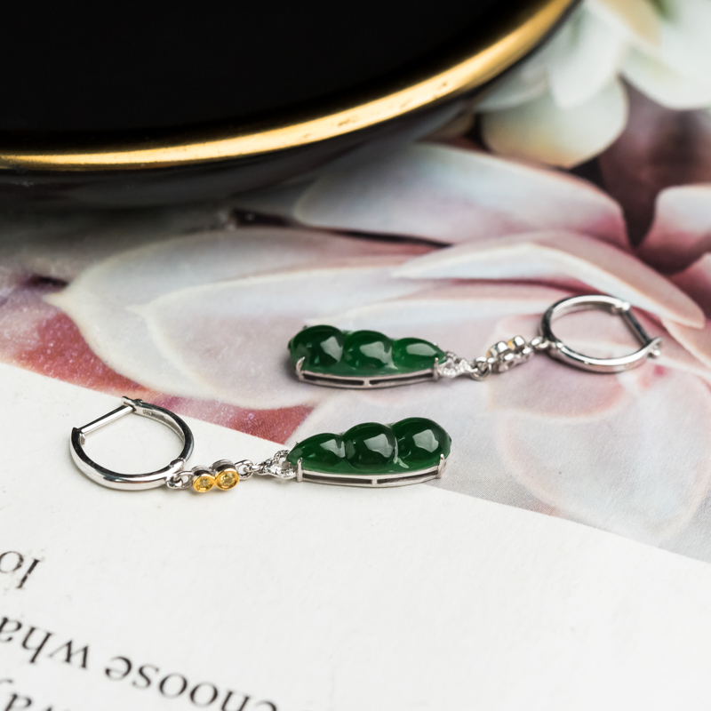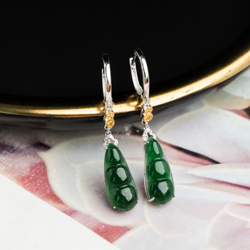 • [名  称] 18K糯冰种深绿翡翠福豆耳坠