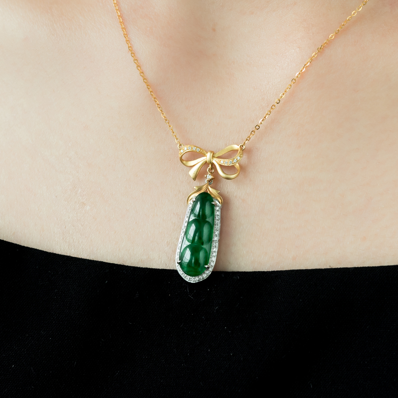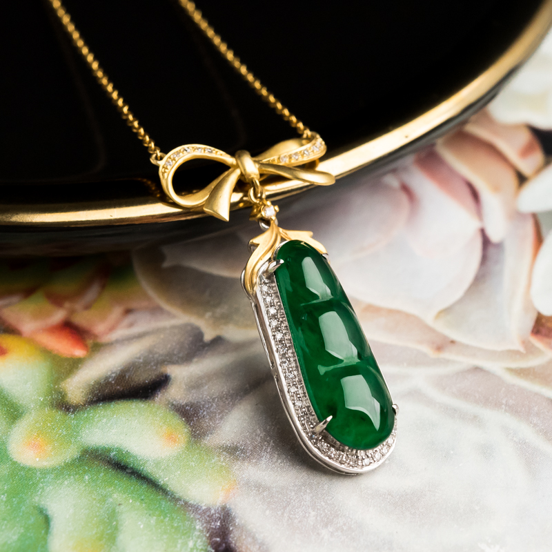 • [名  称] 18K糯冰种深绿翡翠福豆项链
