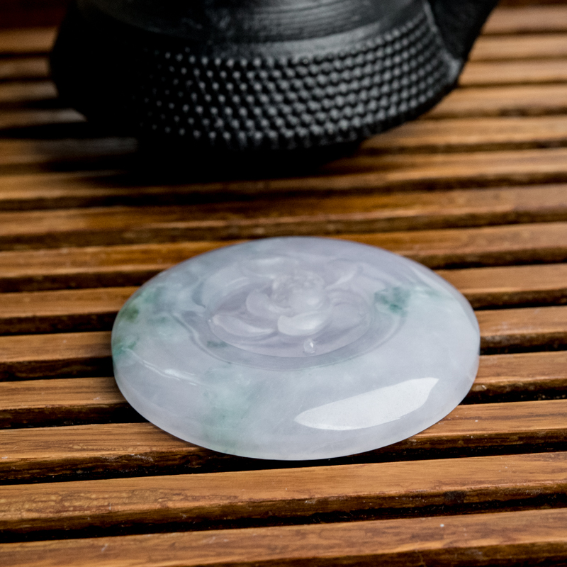 • [名  称] 糯冰种春带彩翡翠幽莲吊坠