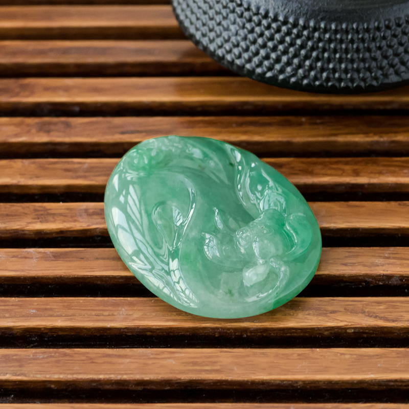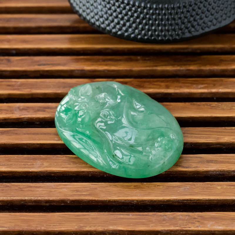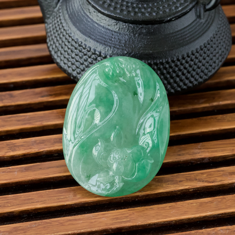 • [名  称] 糯冰种浅绿翡翠连年有余吊坠
