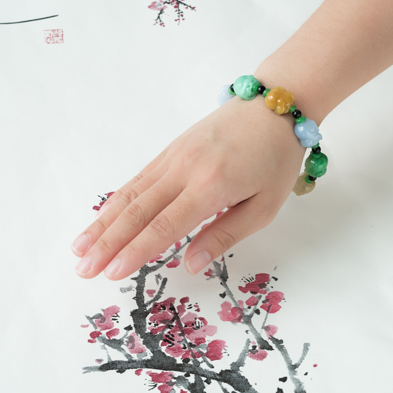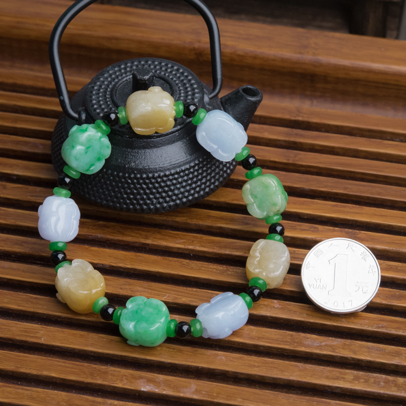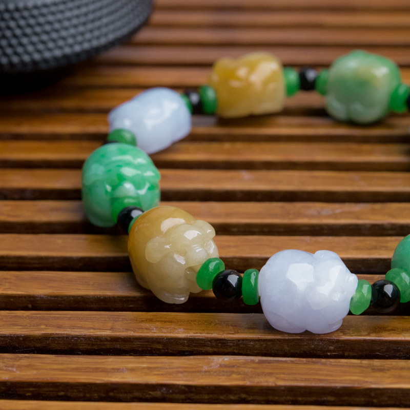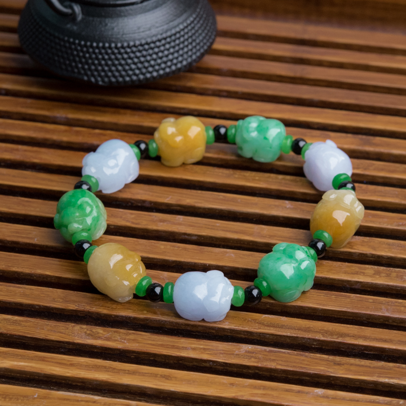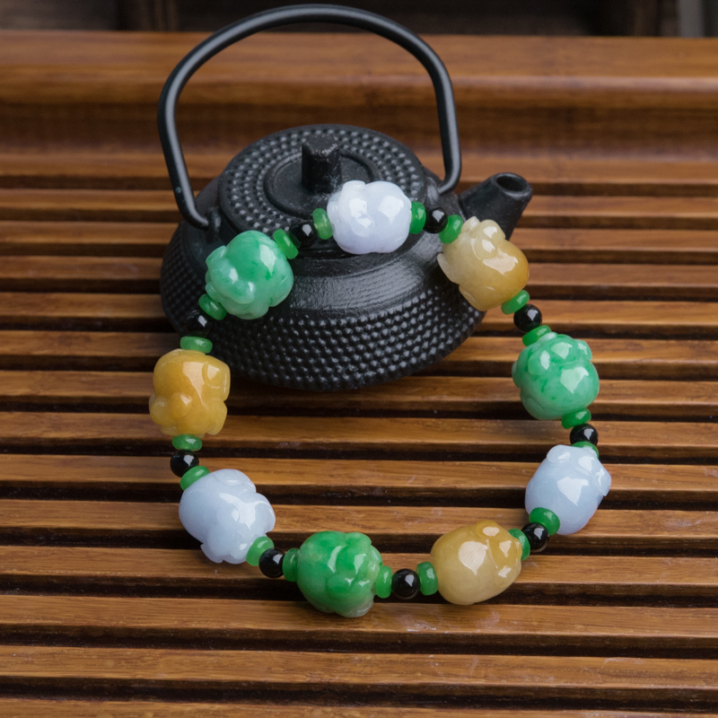 • [名  称] 糯冰种翡翠福猪单圈手串