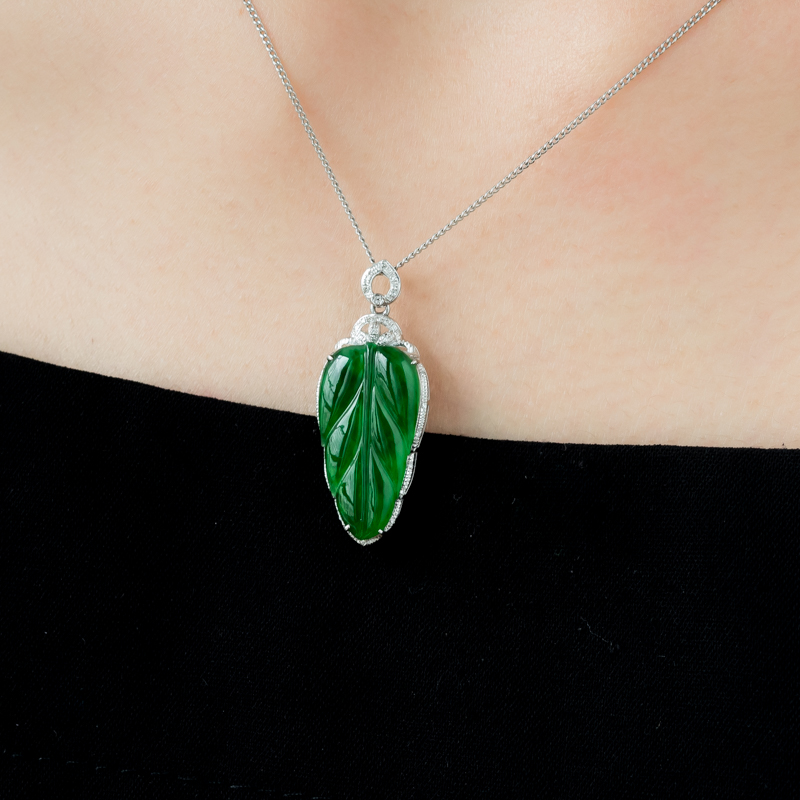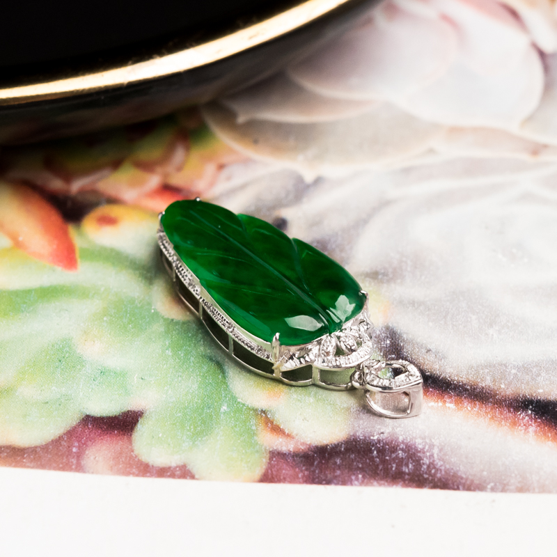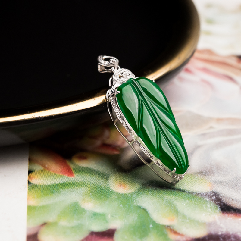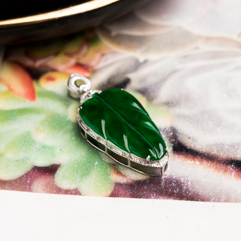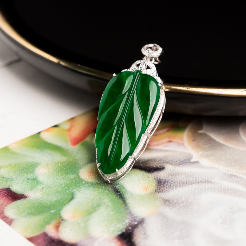 • 18K糯冰种翠绿翡翠金枝玉叶吊坠
