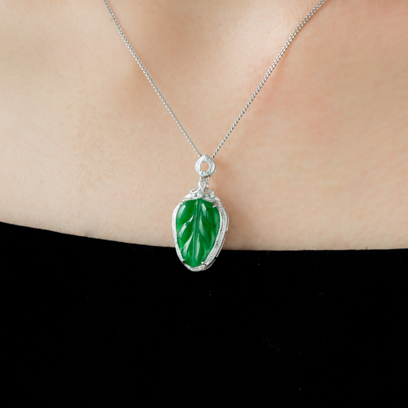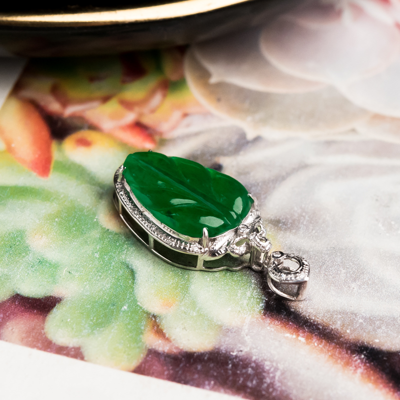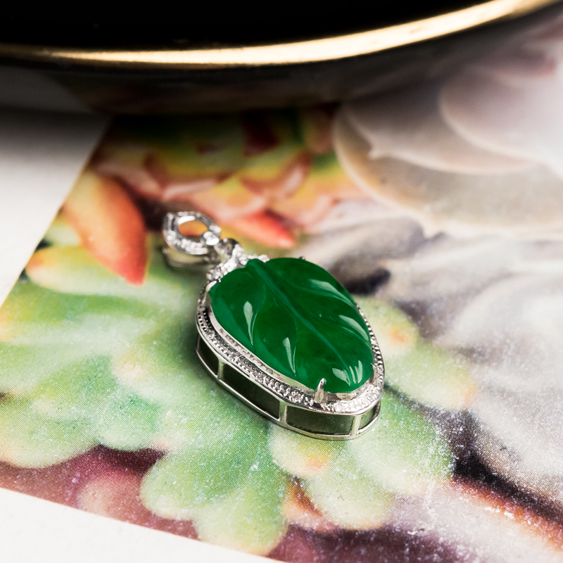 • 18K糯冰种翠绿翡翠金枝玉叶吊坠