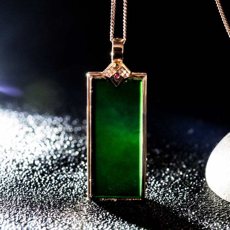 • 18K糯冰种墨翠无事牌吊坠