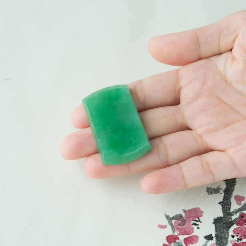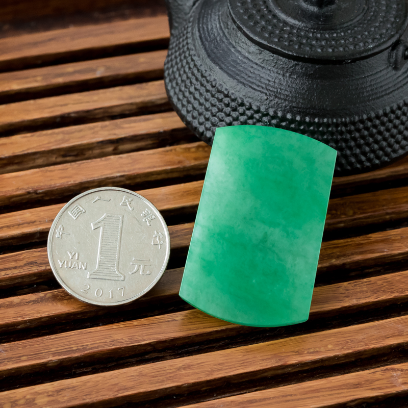 • [名  称] 糯冰种翠绿翡翠无事牌戒面