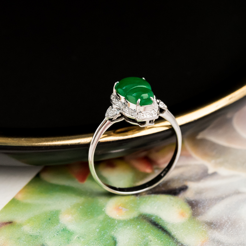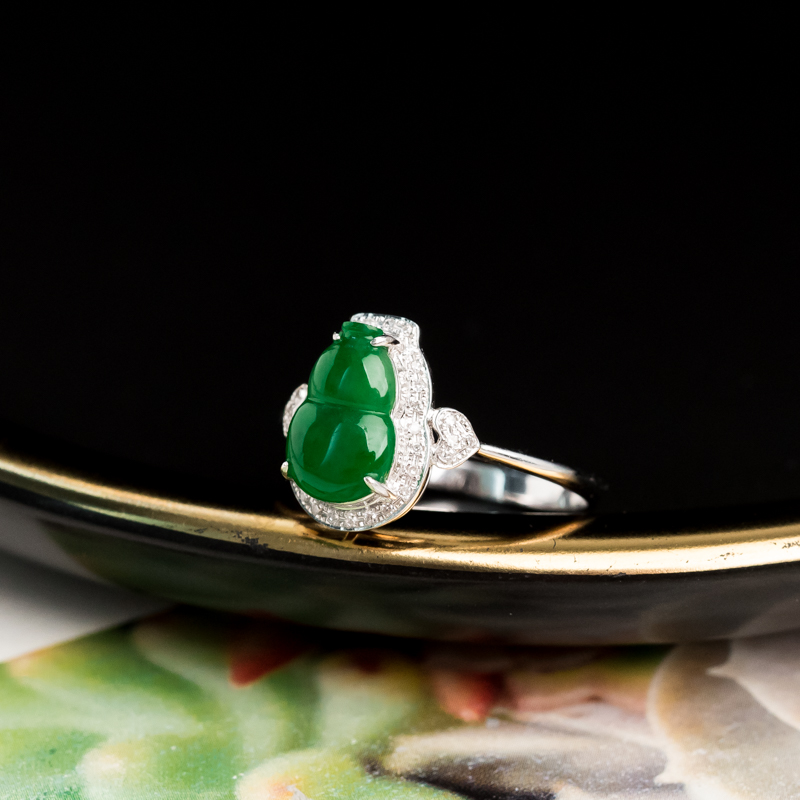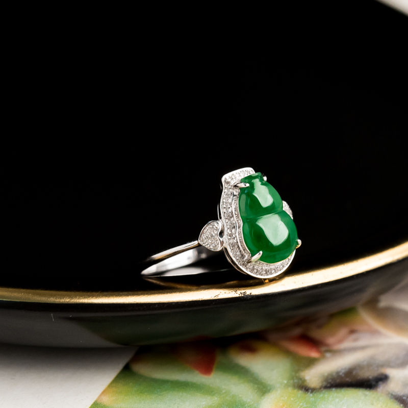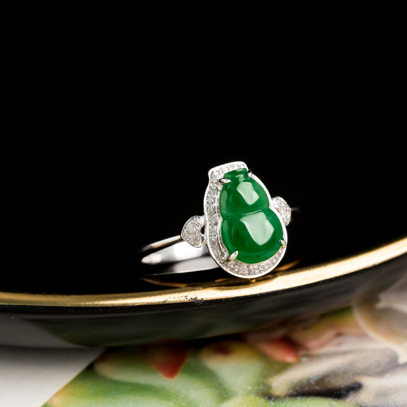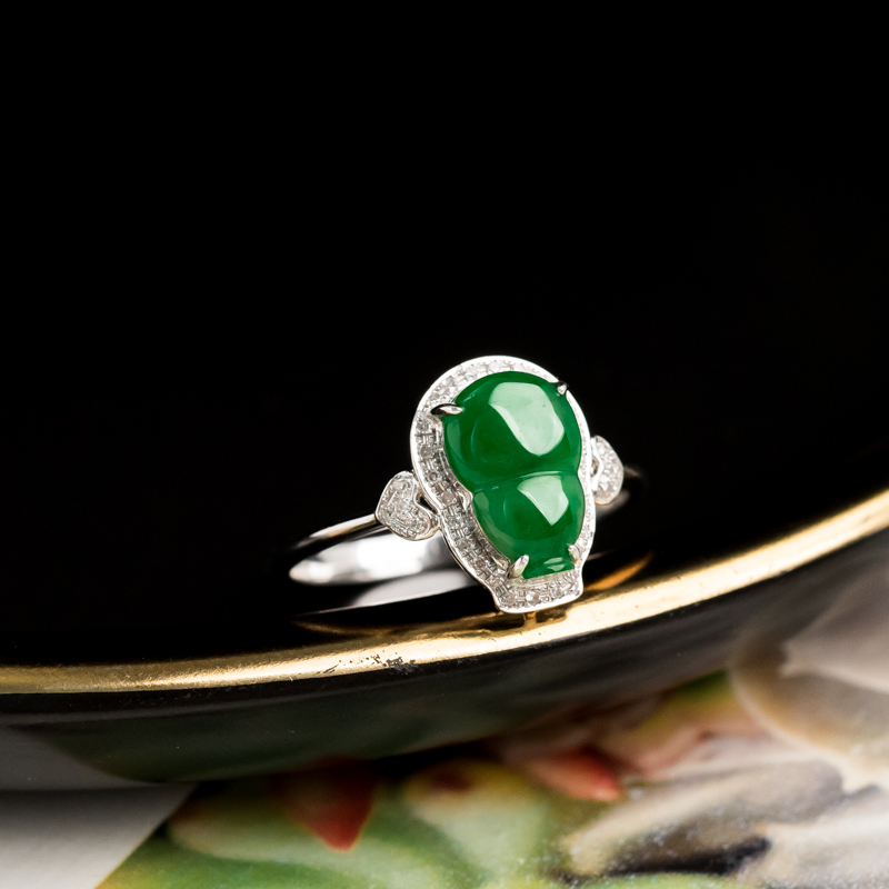 • [名  称] 18K糯冰种翠绿翡翠福禄戒指