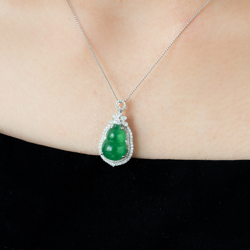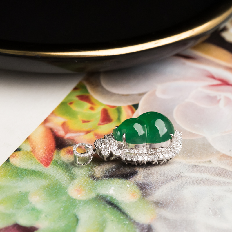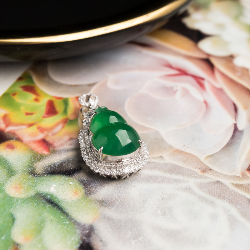 • 18K糯冰种翠绿翡翠福禄吊坠