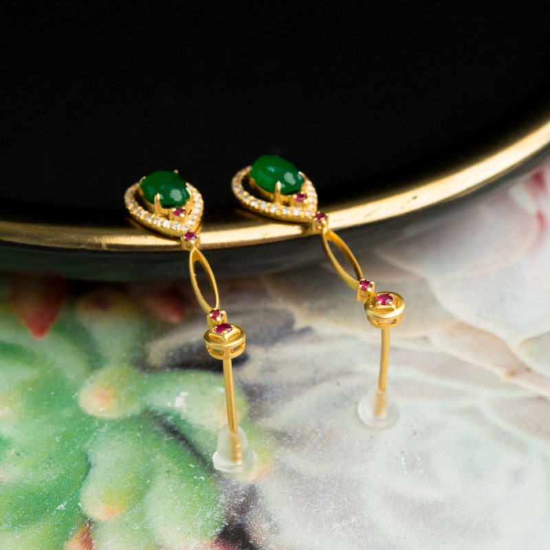 • 18K糯冰种翠绿翡翠耳坠