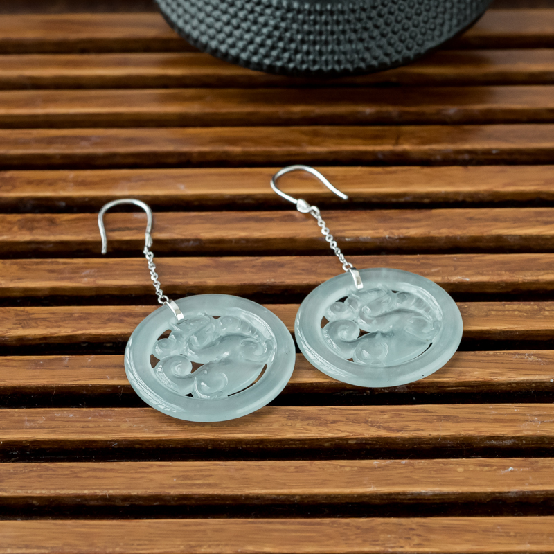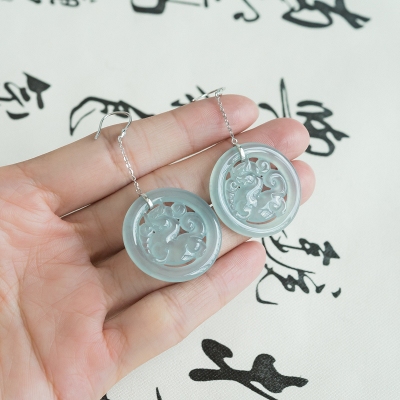 • [名  称] 18K糯冰种淡晴水翡翠麒麟耳坠