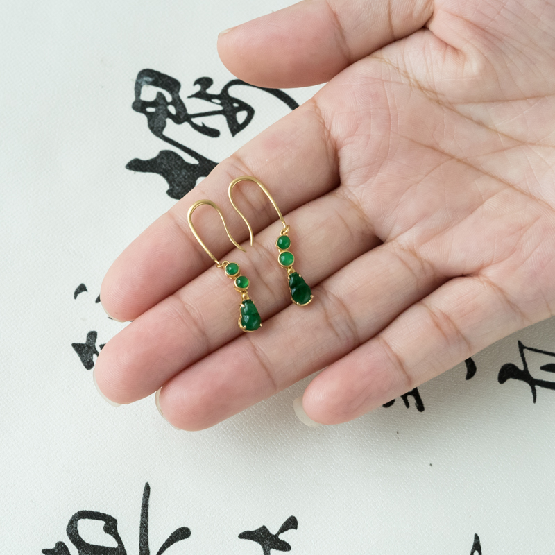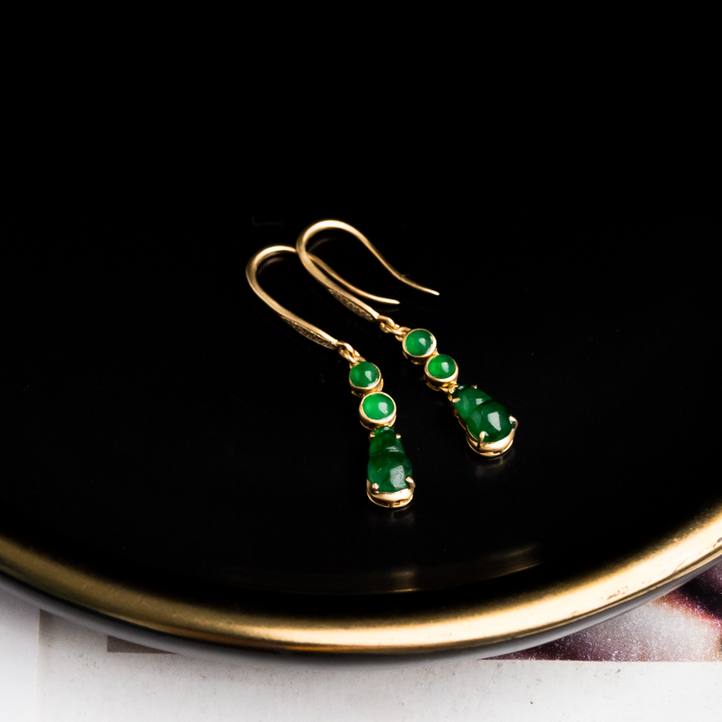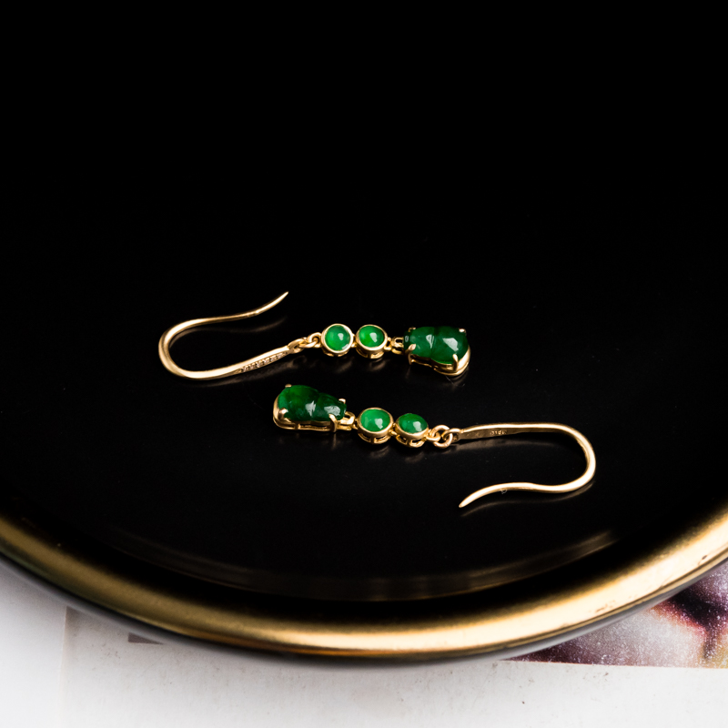 • 18K糯冰种翠绿翡翠福禄耳坠