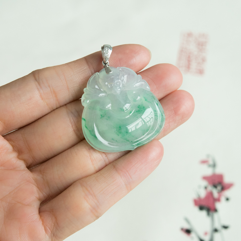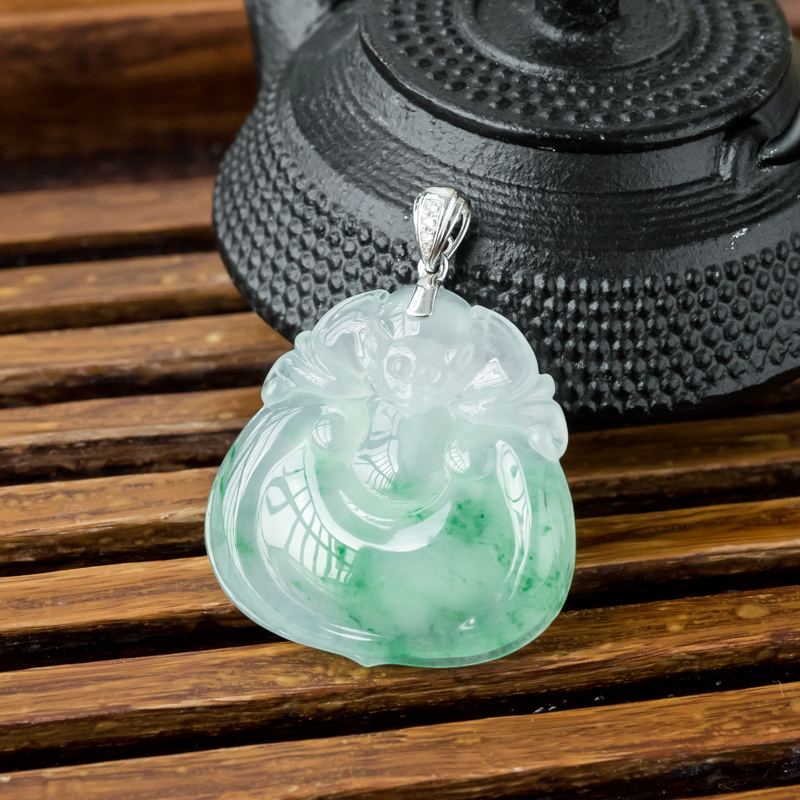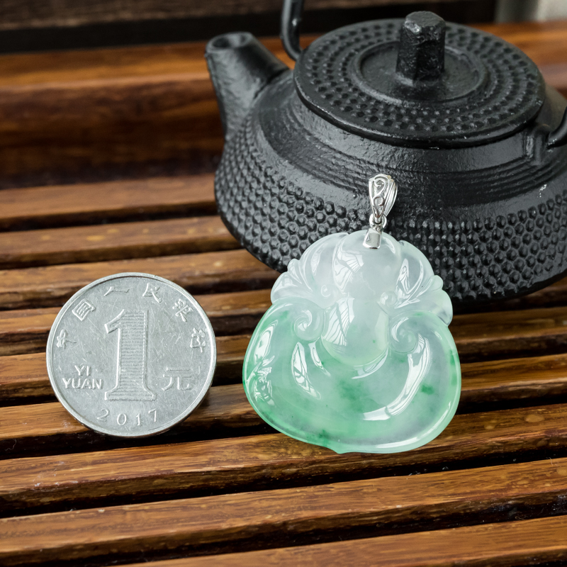 • [名  称] 18K糯冰种飘翠翡翠福贝吊坠