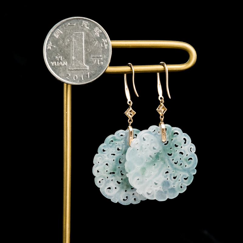 • [名  称] 18K糯冰种飘花翡翠缠枝纹耳坠
