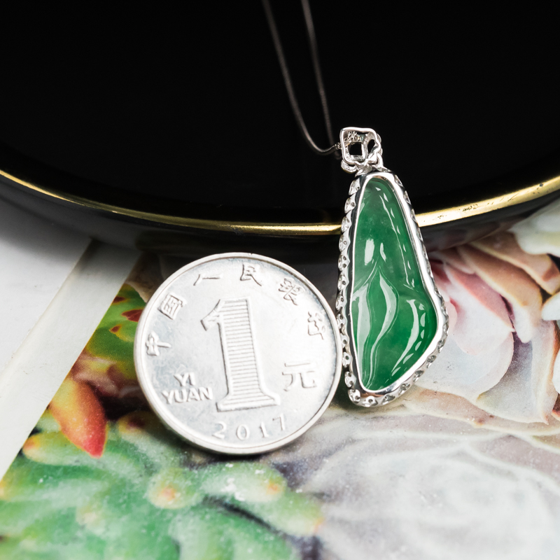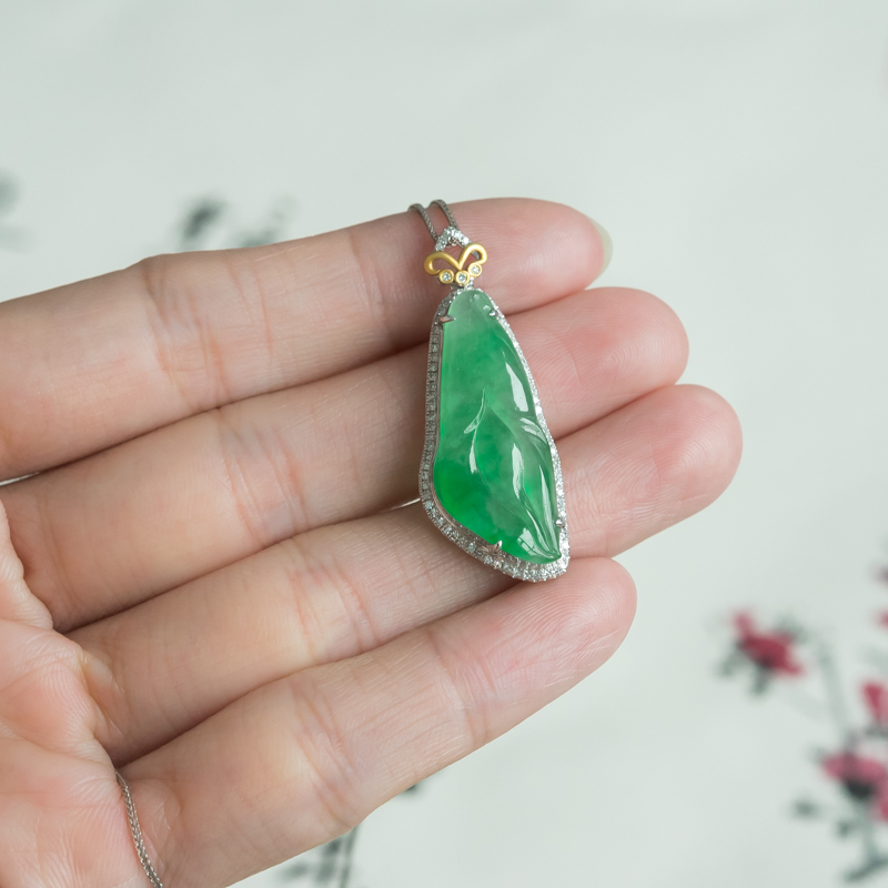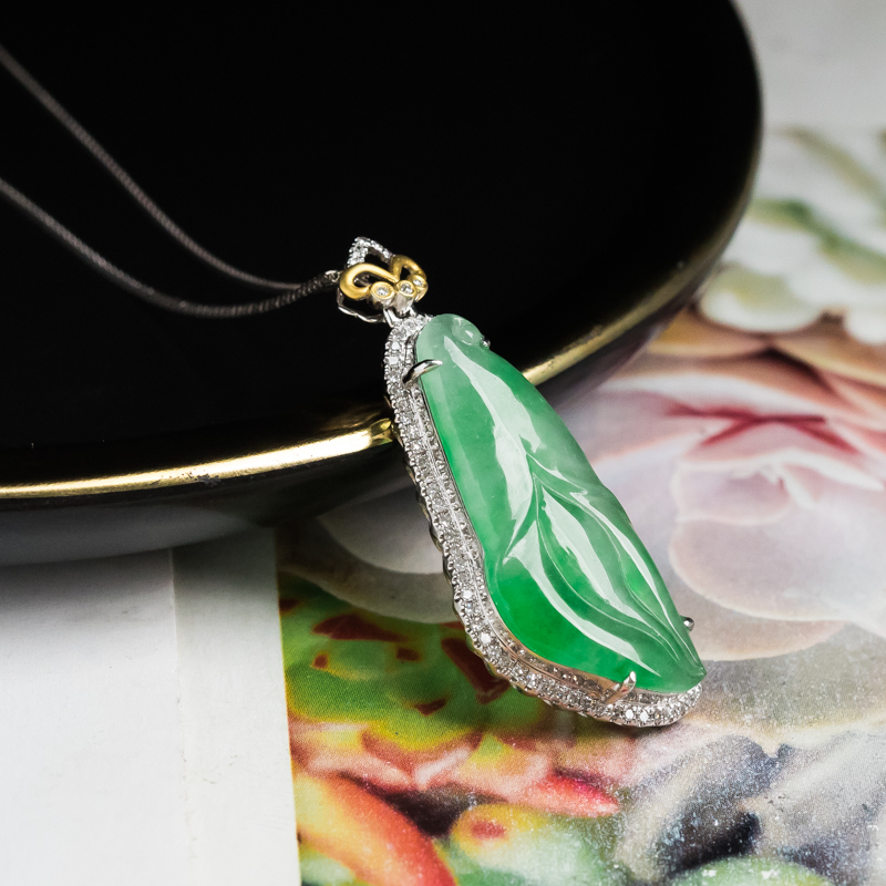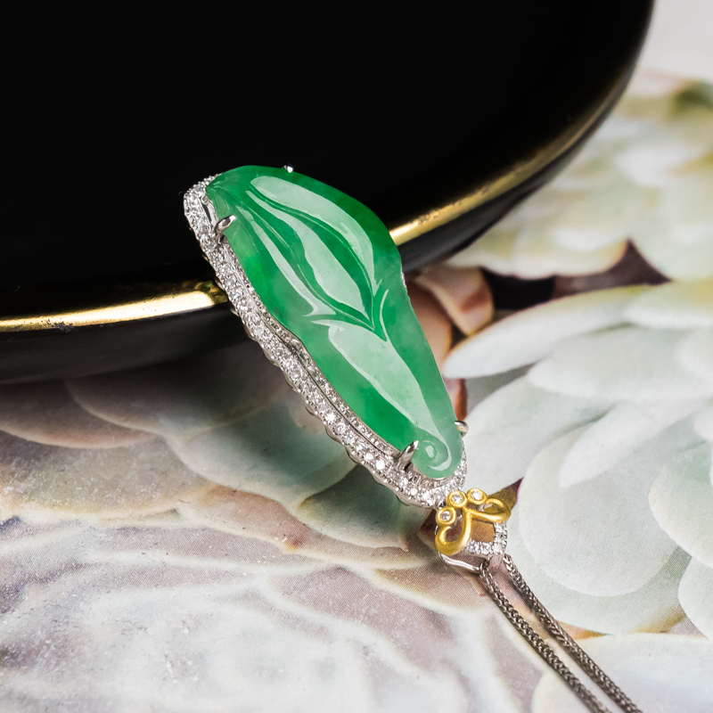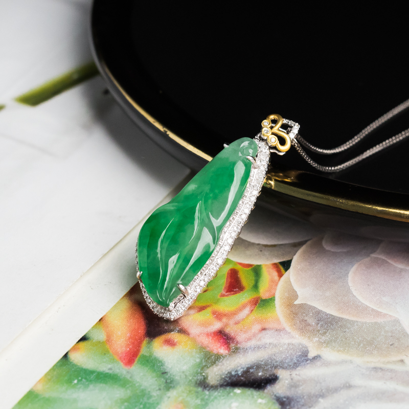 • [名  称] 18K糯冰种飘翠翡翠百年好合项链