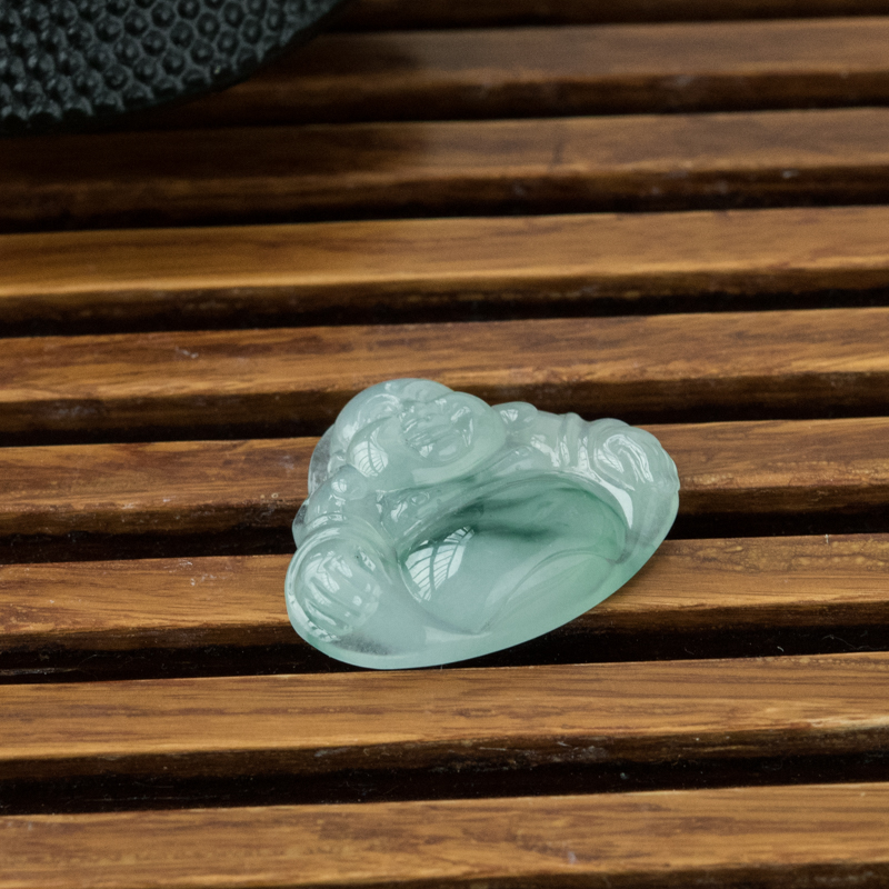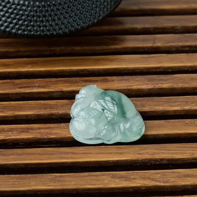 • 糯冰种飘花翡翠弥勒佛吊坠