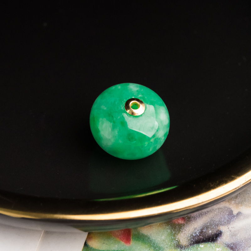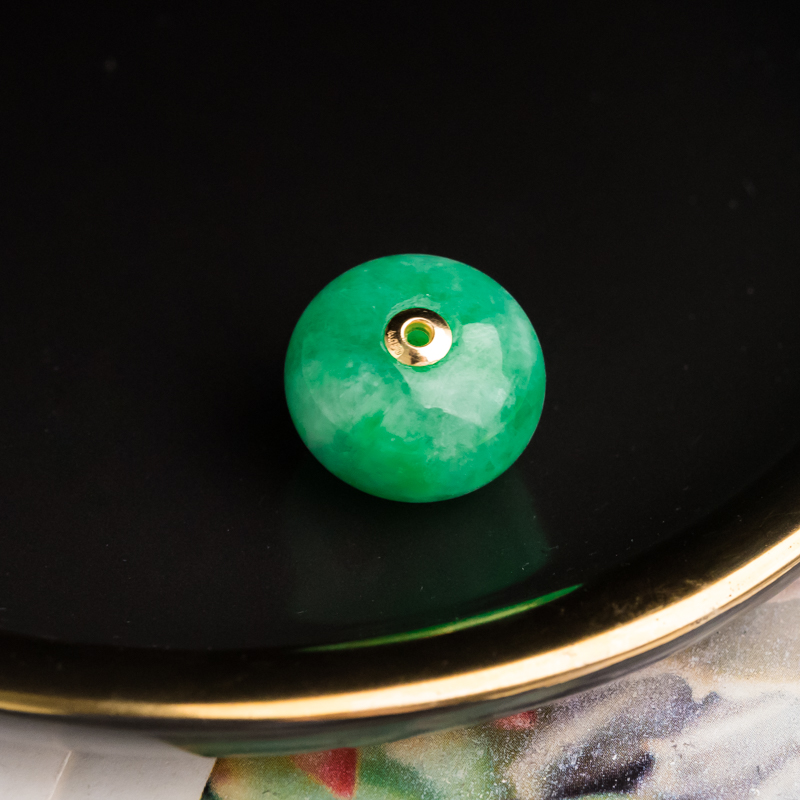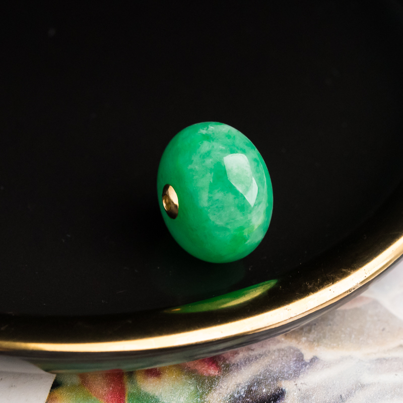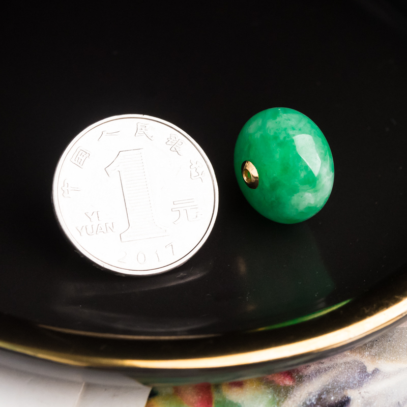• [名  称] 18K糯冰种豆绿翡翠路路通吊坠