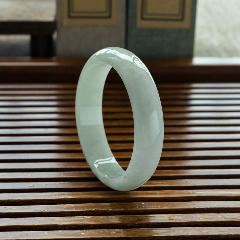 • 57.5mm糯冰种浅绿翡翠平安镯