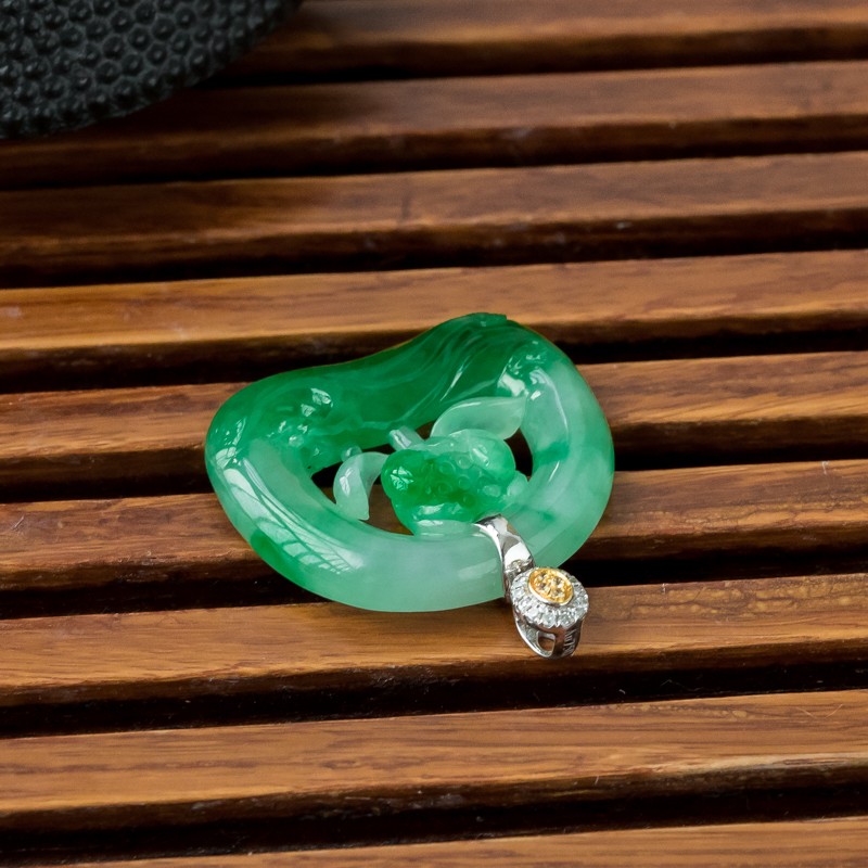• 18K糯冰种飘翠翡翠一品清廉吊坠