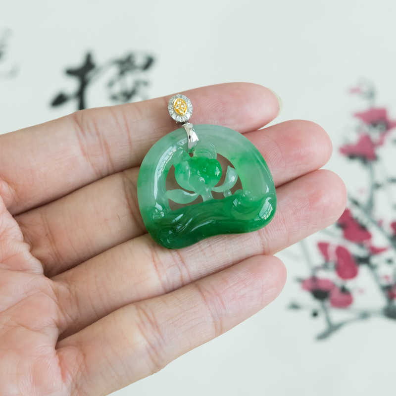 • [名  称] 18K糯冰种飘翠翡翠一品清廉吊坠