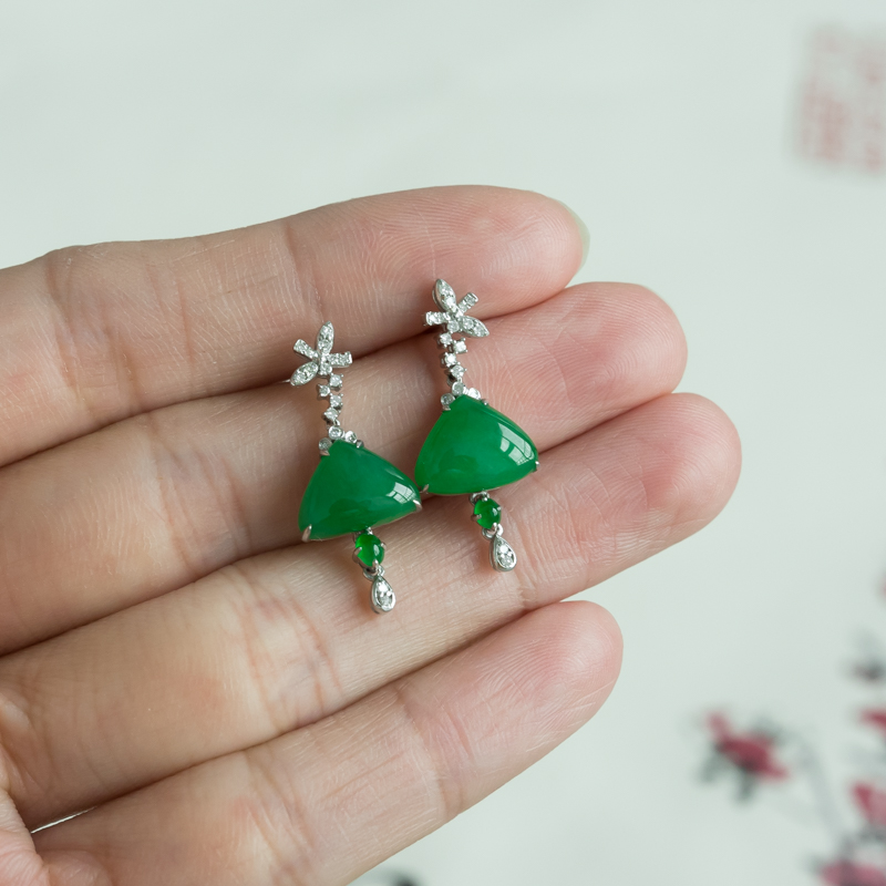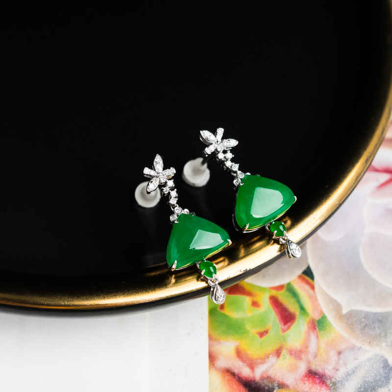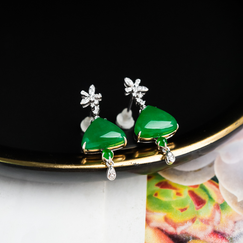 • [名  称] 18K糯冰种阳绿翡翠耳坠