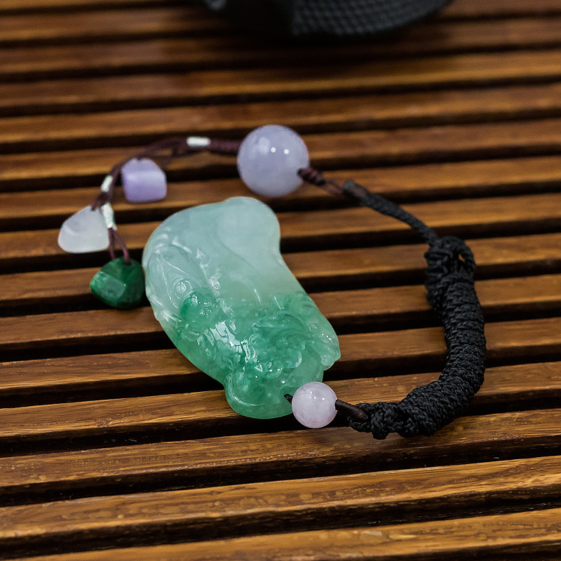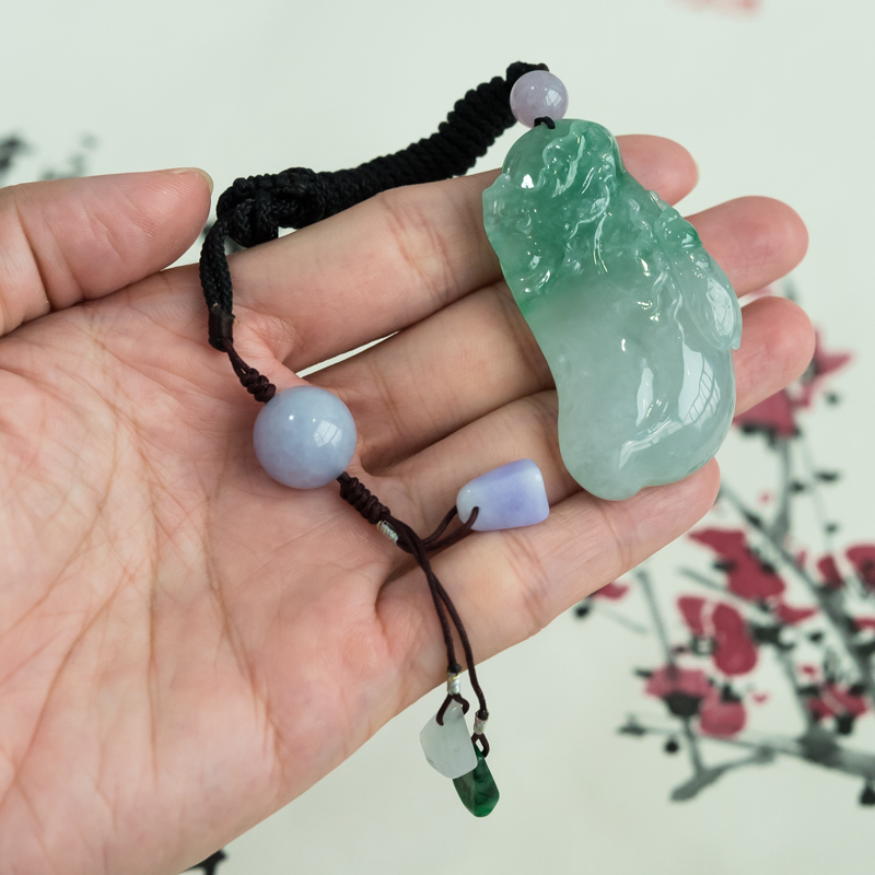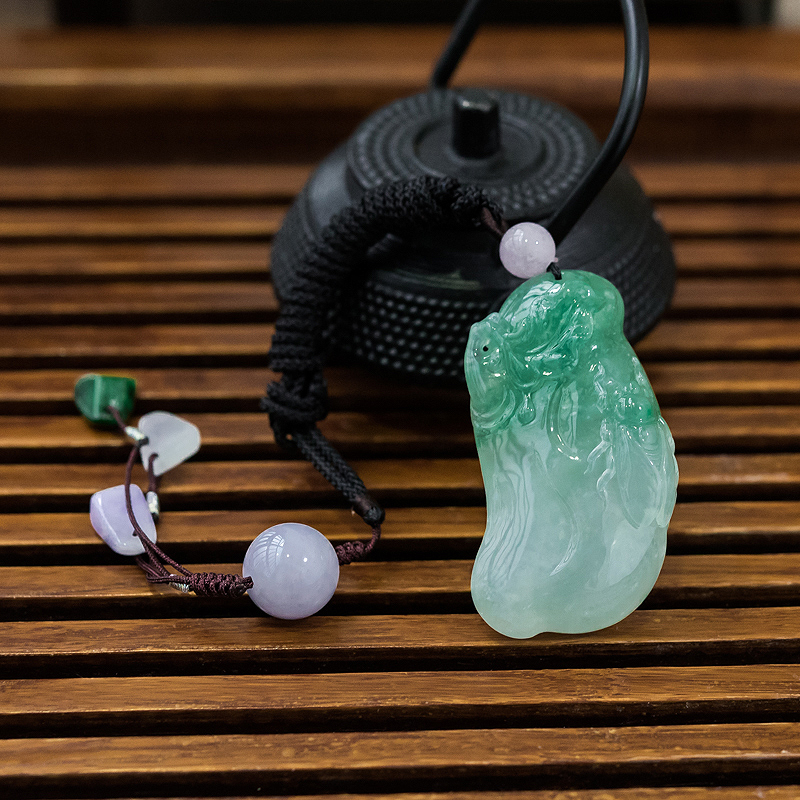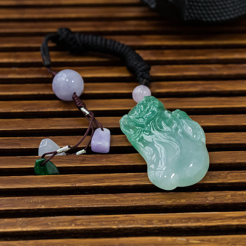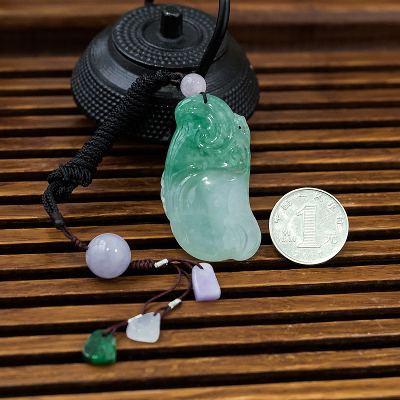 • 糯冰种飘翠翡翠一鸣惊人吊坠