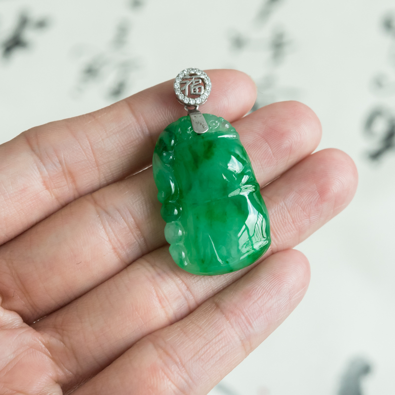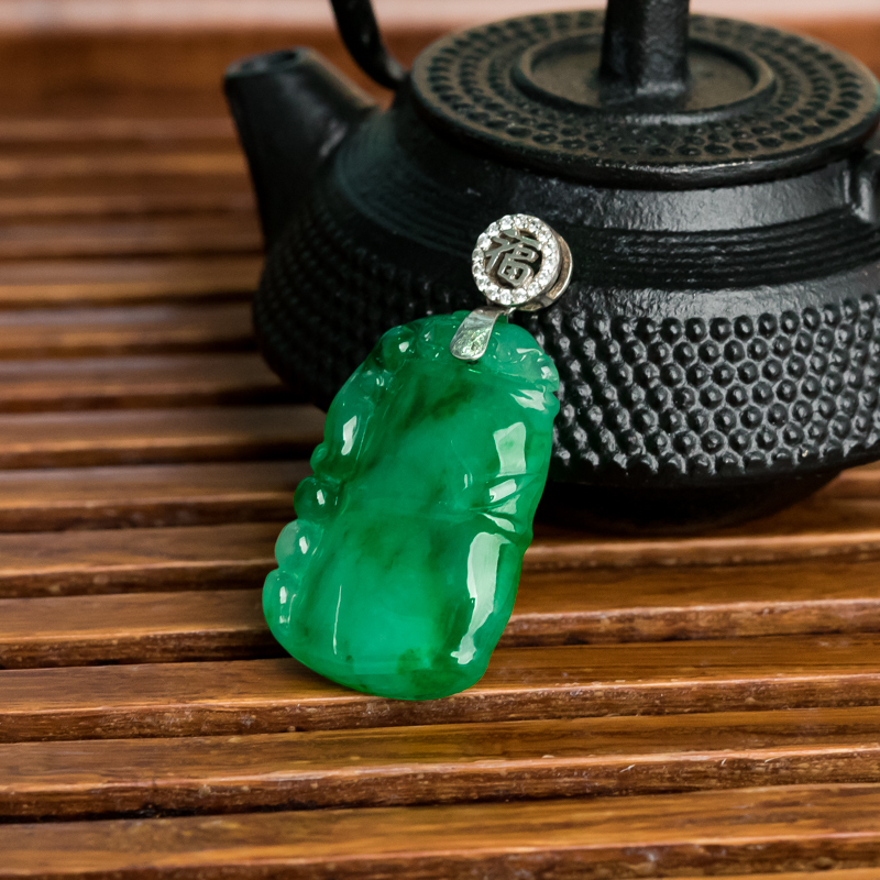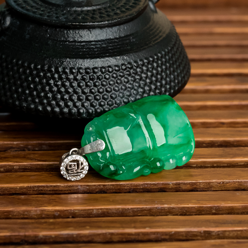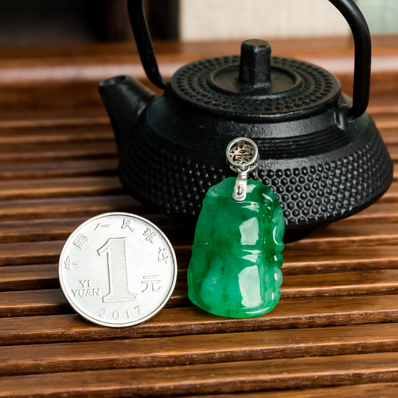 • 银镶糯冰种飘翠翡翠高风亮节吊坠
