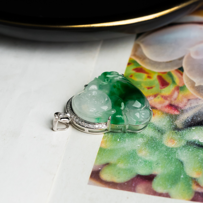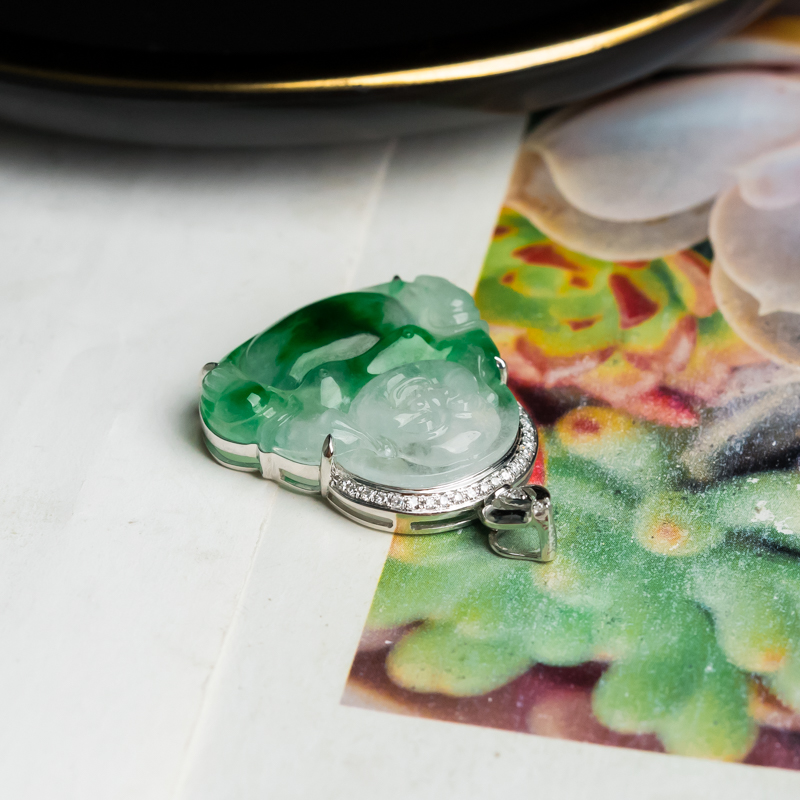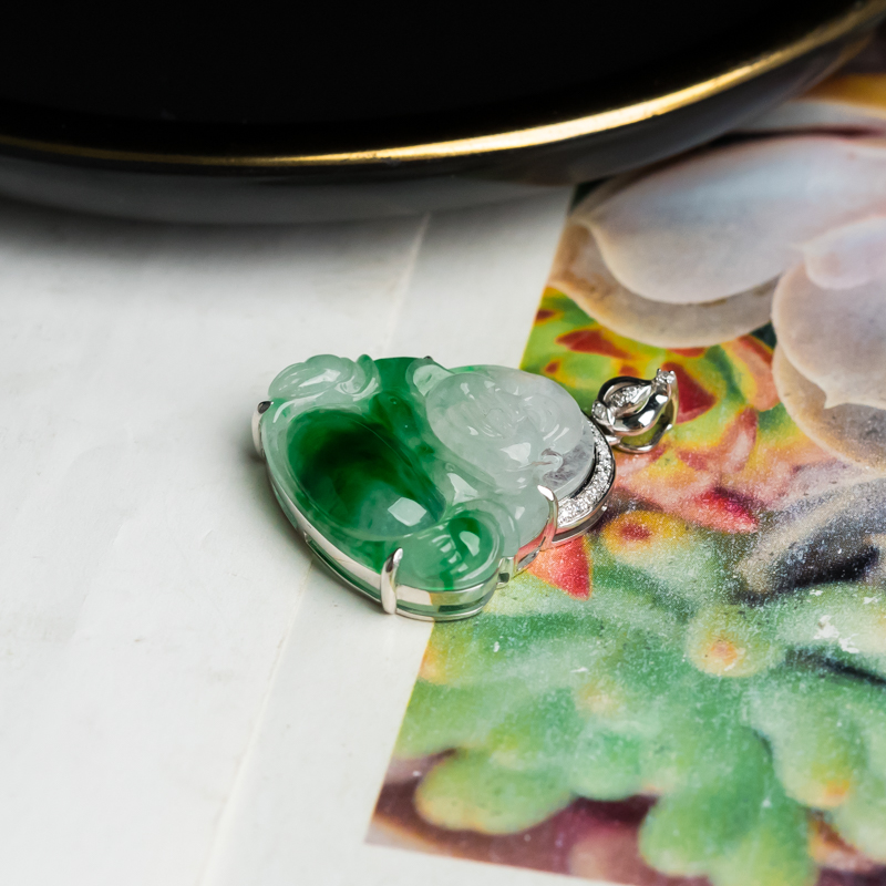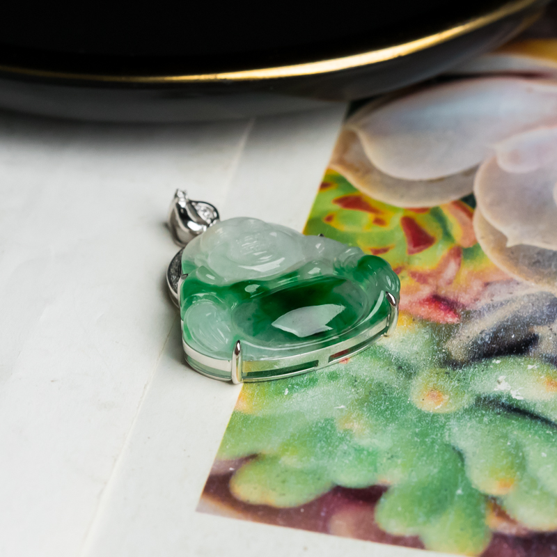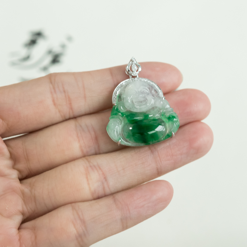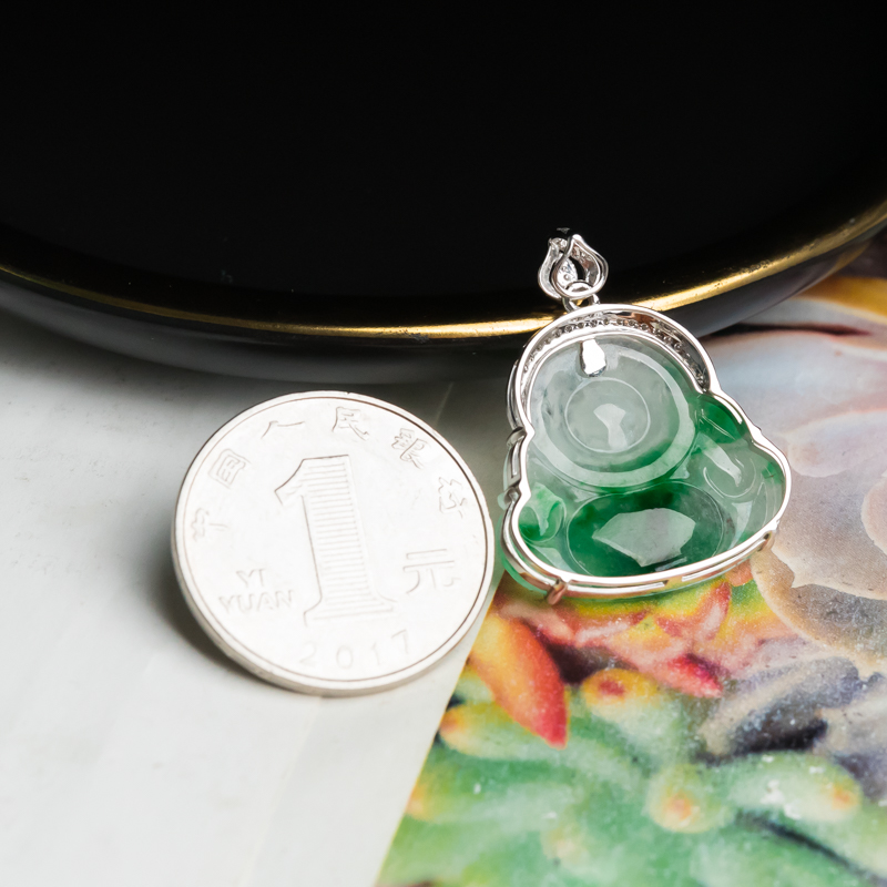 • [名  称] 18K糯冰种飘翠翡翠弥勒佛吊坠