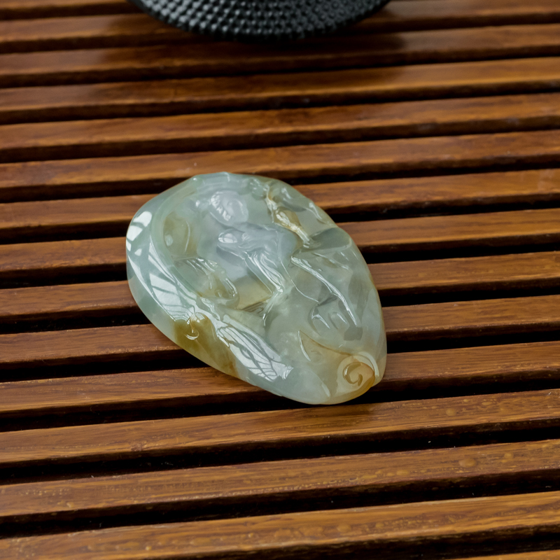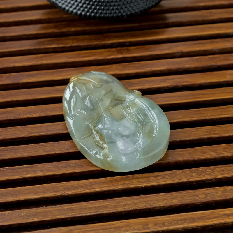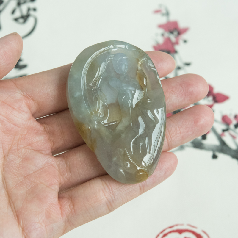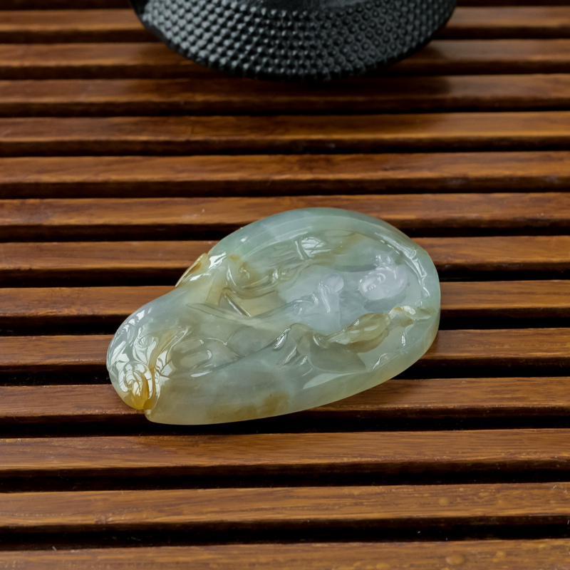 • 糯冰种飘黄翡翡翠仕女吊坠