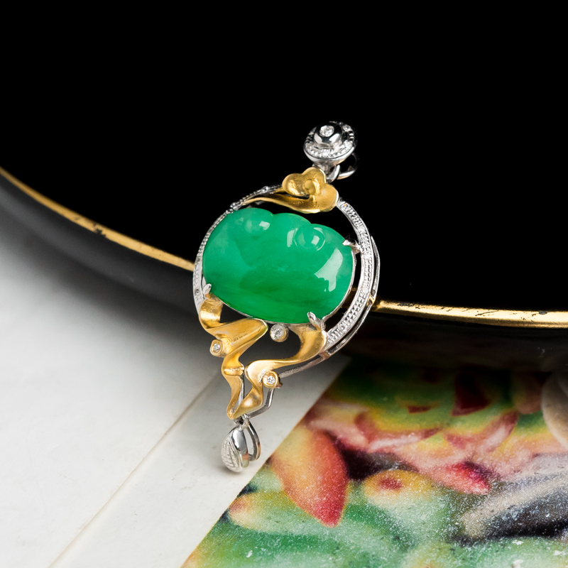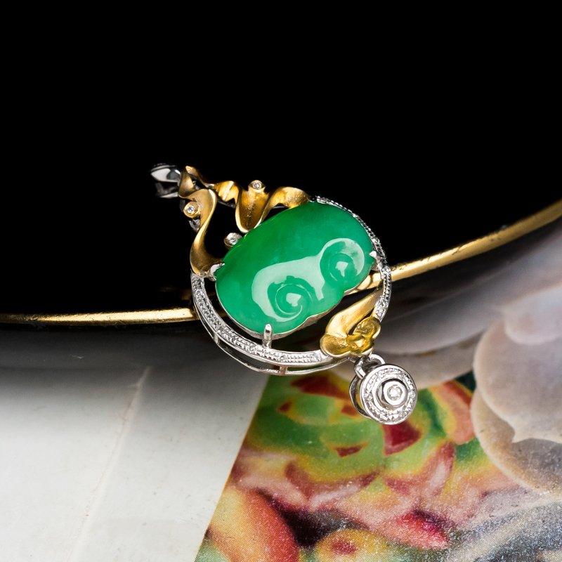 • [名  称] 18K糯冰种飘翠翡翠如意吊坠