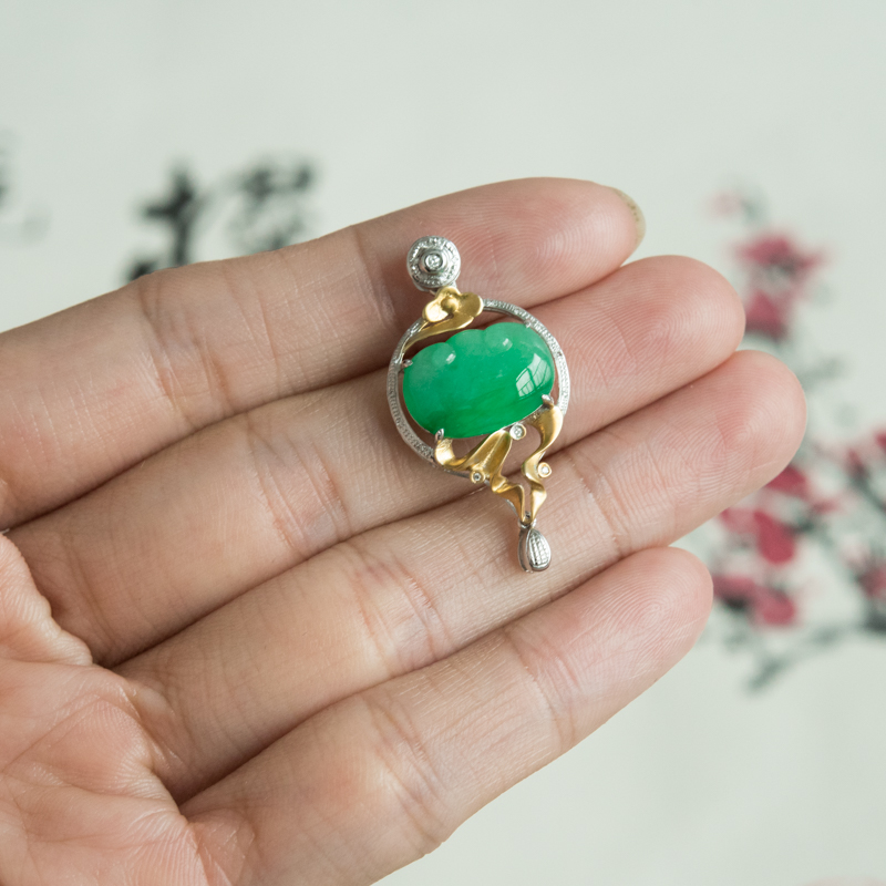 为了让珠宝的价值得到更大程度的体现,每一个作品都是根据料子本身做专业的设计,让每件作品都有灵魂。设计好以后会根据设计创意做专业的镶嵌或雕刻,确保每个接口都严丝合缝,每一刀都流畅自如