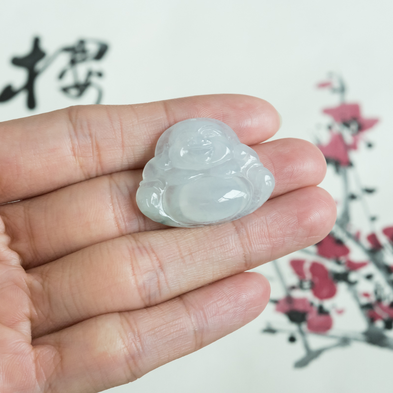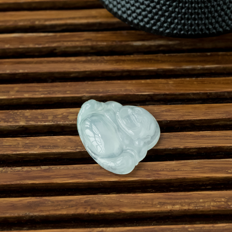 • 糯冰种飘花翡翠弥勒佛吊坠
