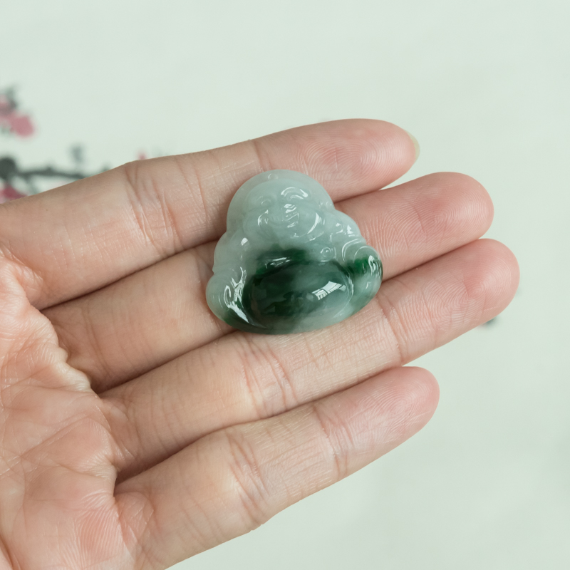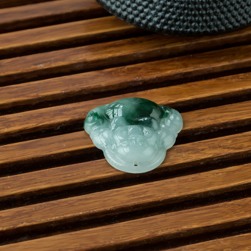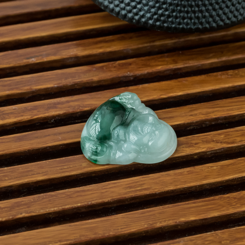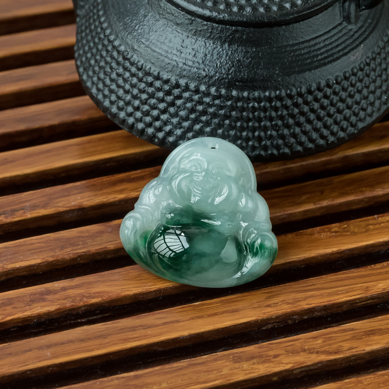 • 糯冰种飘翠翡翠弥勒佛吊坠