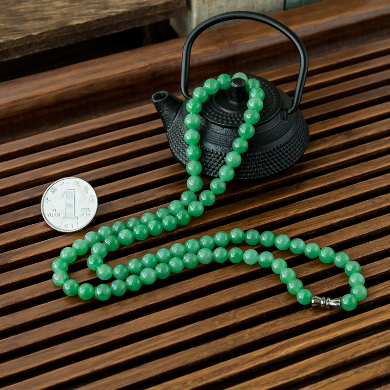 • 6.5mm糯冰种翠绿翡翠项链