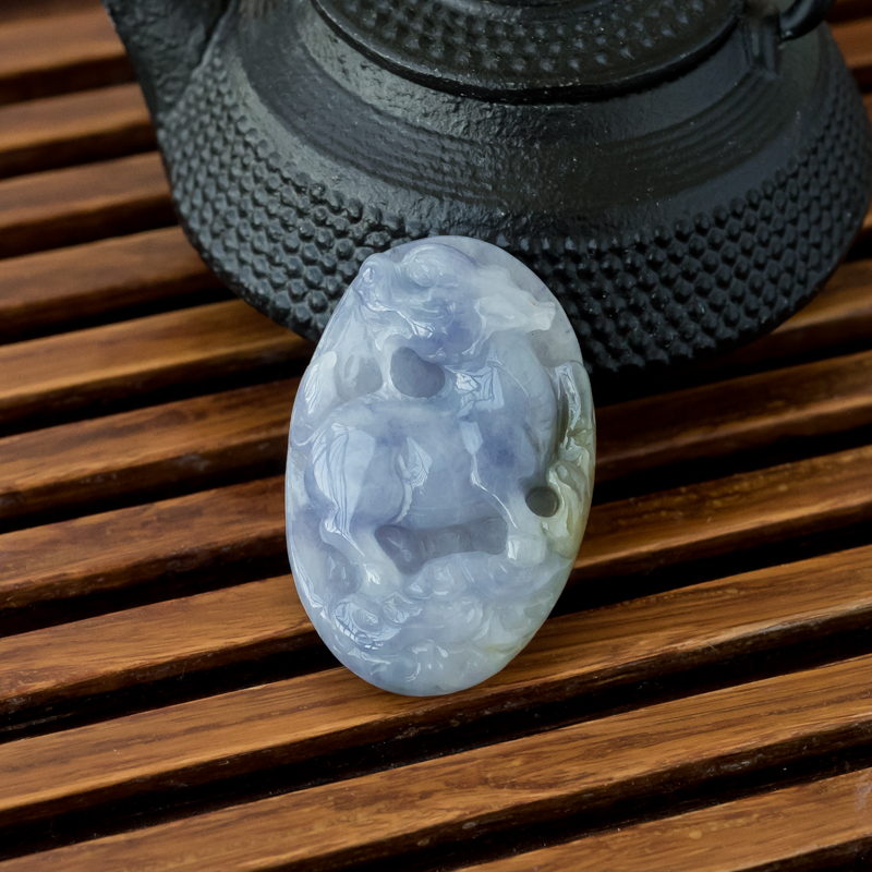 • [名  称] 糯冰种紫罗兰翡翠麒麟吊坠