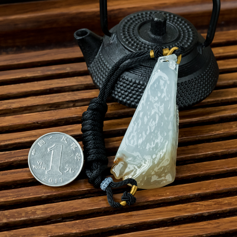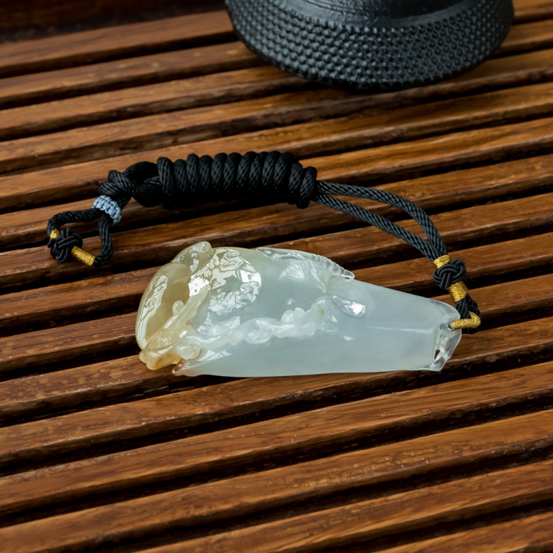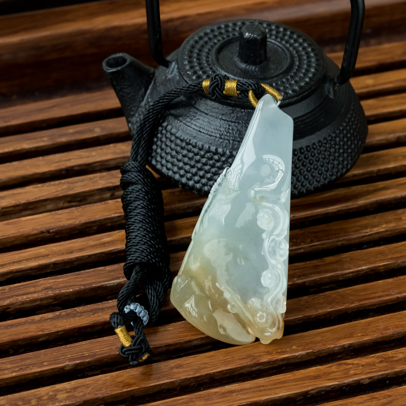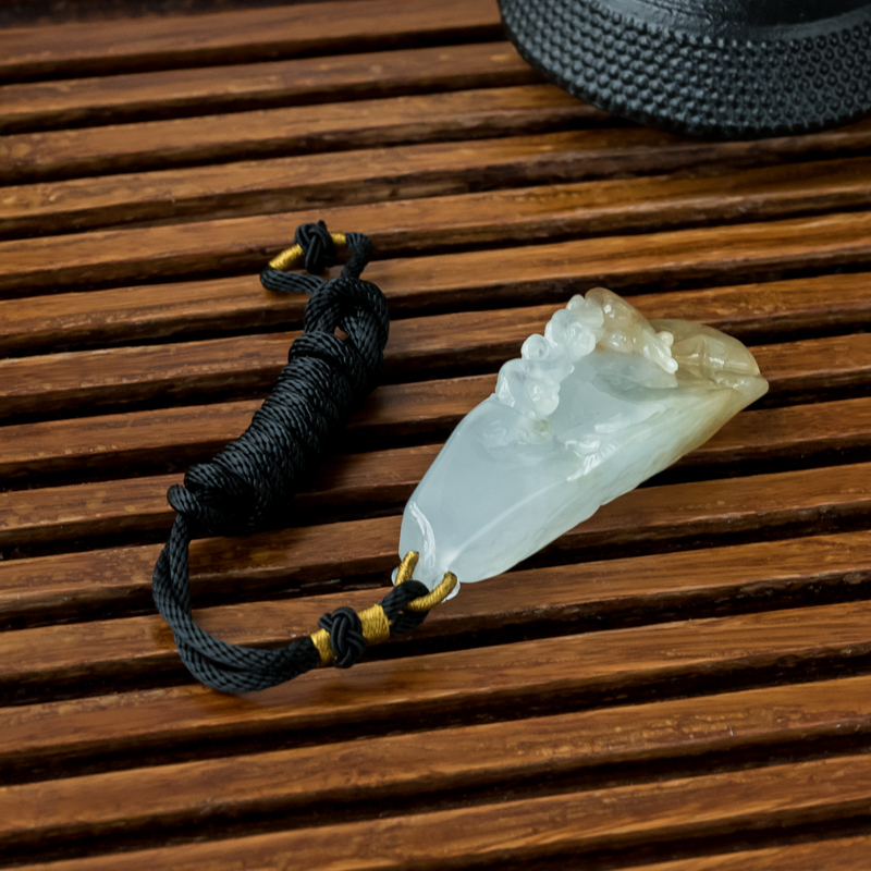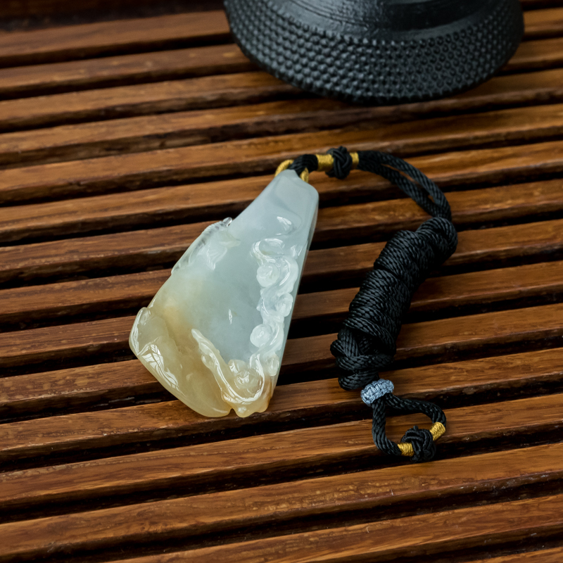 • 糯冰种飘黄翡翡翠喜上眉梢吊坠