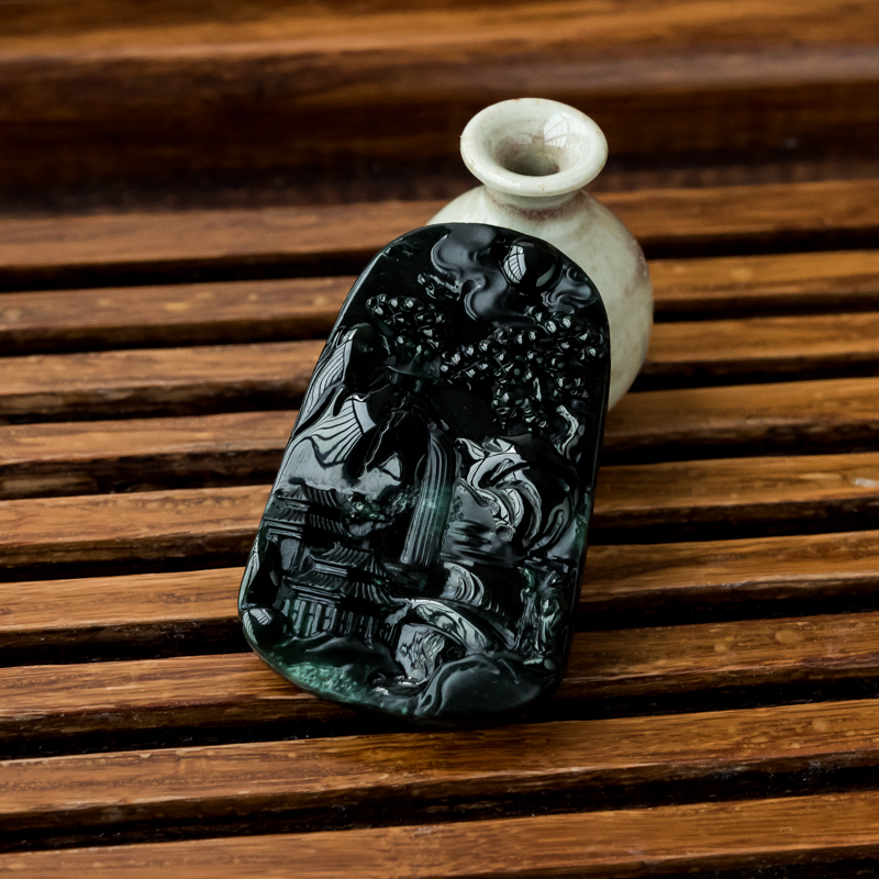 • [名  称] 糯冰种墨翠高山流水吊坠
