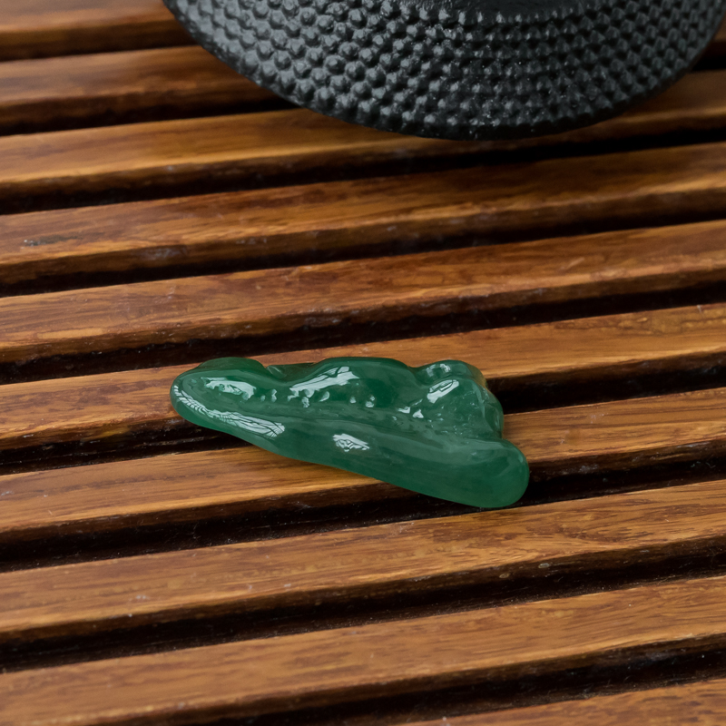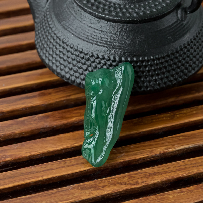 • 糯冰种深绿翡翠随形吊坠