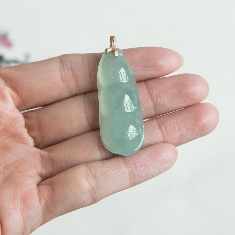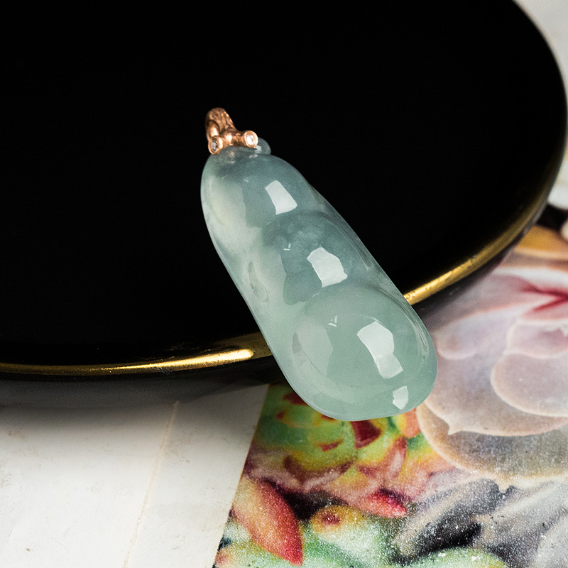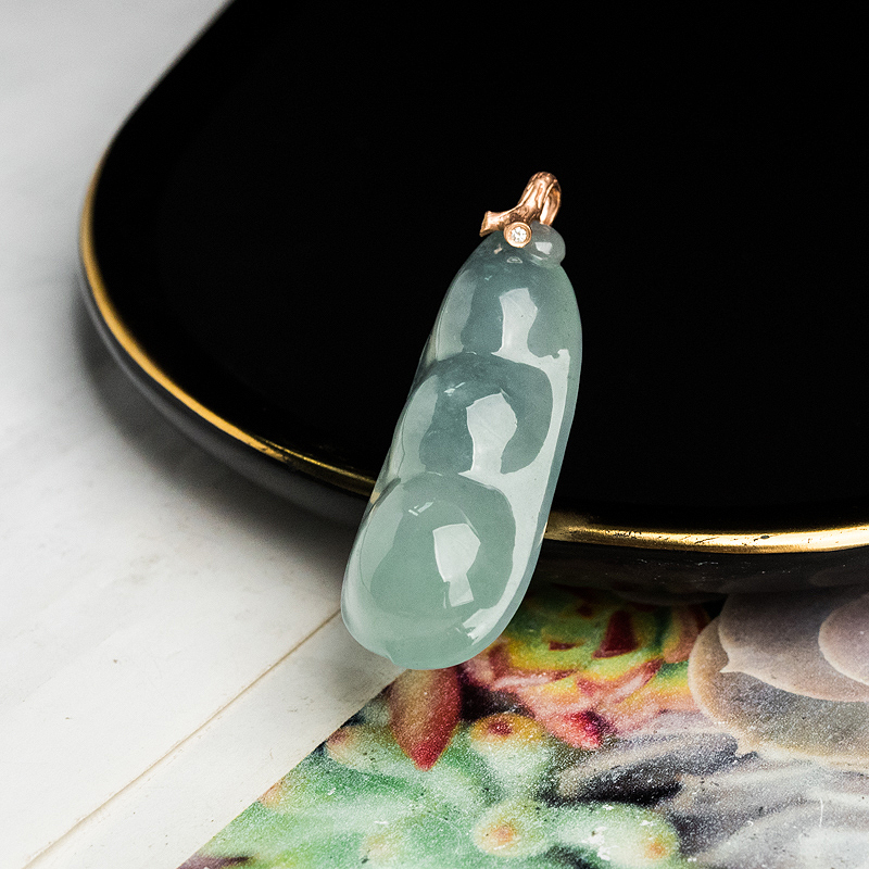 • 18K糯冰种晴水翡翠连中三元吊坠