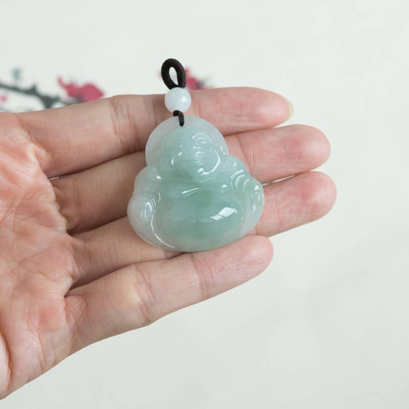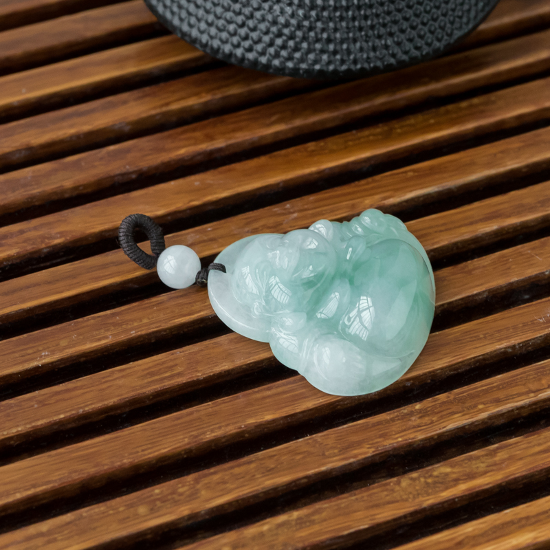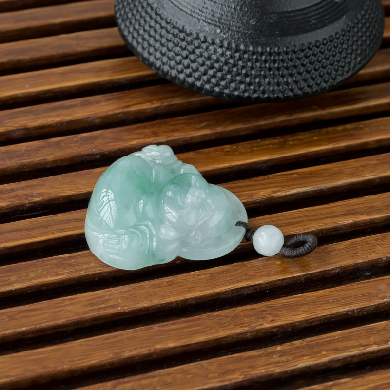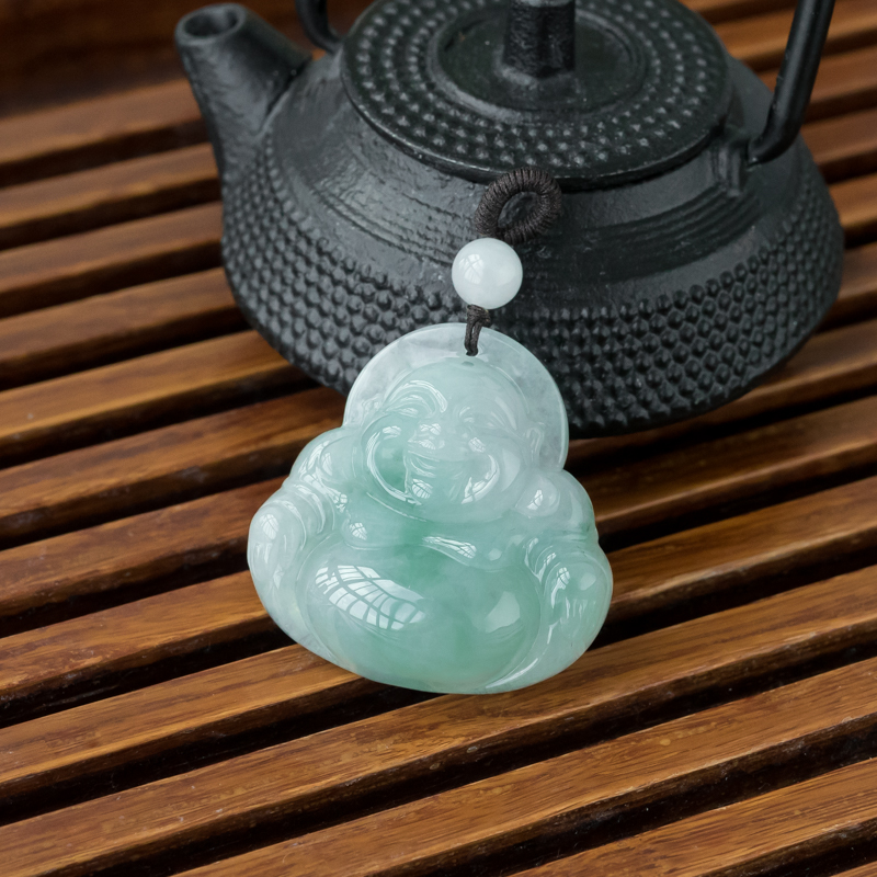• 糯冰种飘翠翡翠弥勒佛吊坠