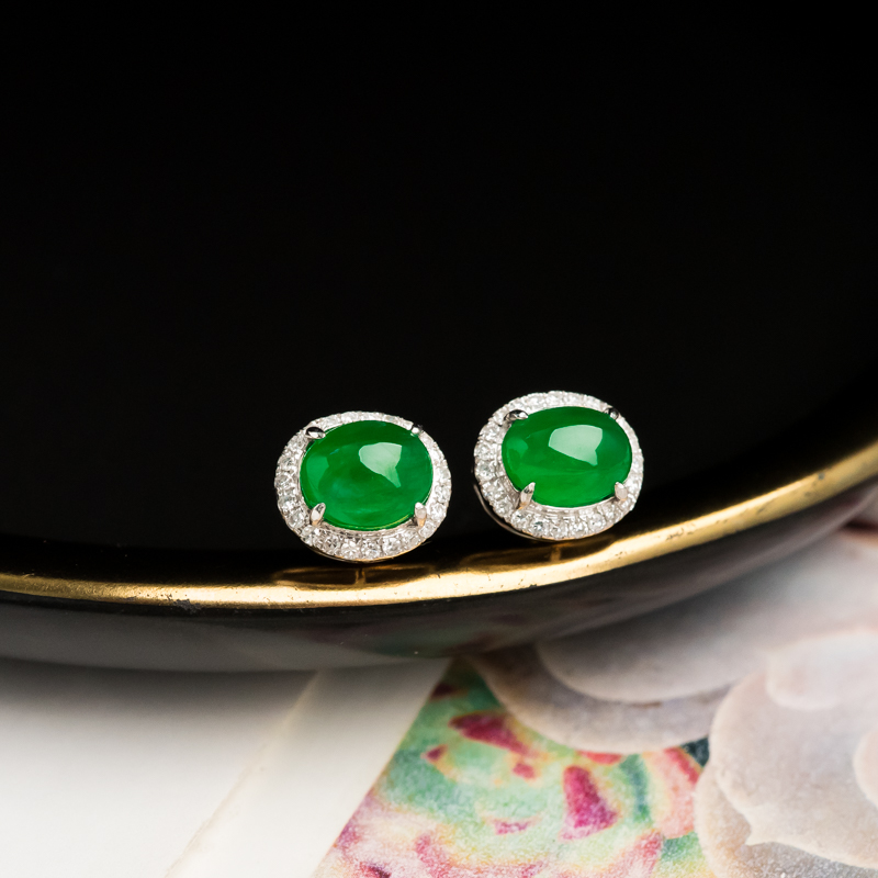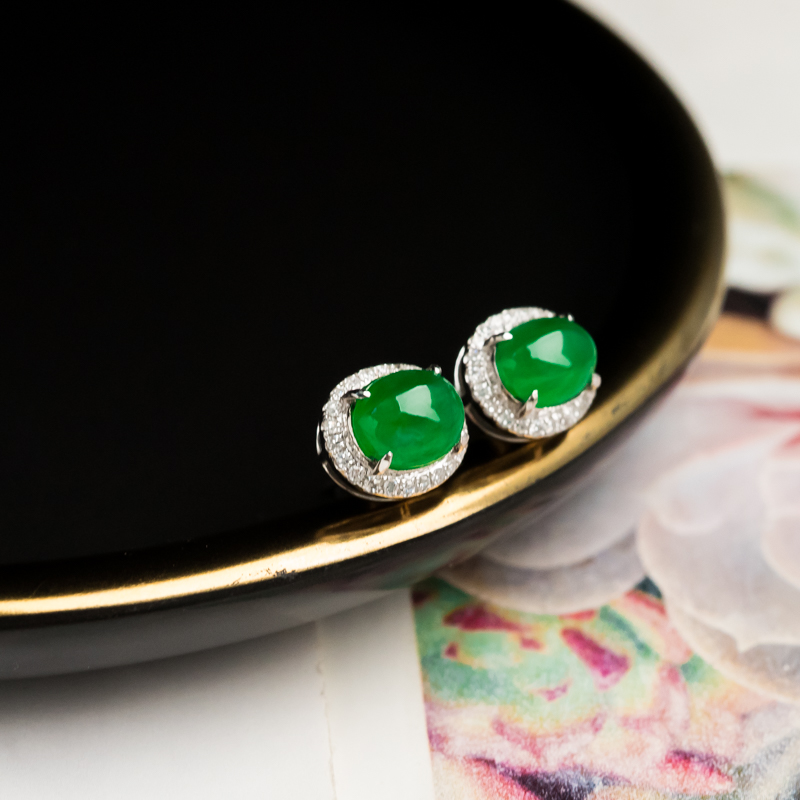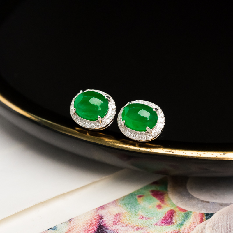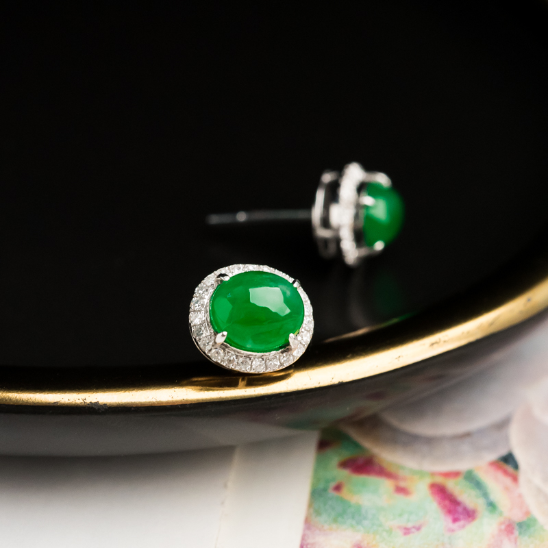 • [名  称] 18K糯冰种翠绿翡翠耳钉