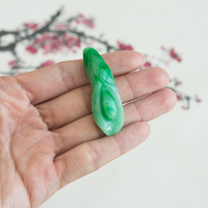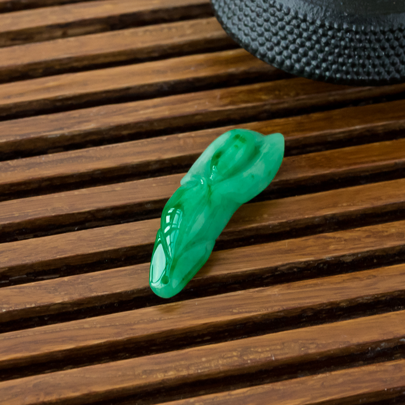 • 糯冰种飘翠翡翠百年好合吊坠
