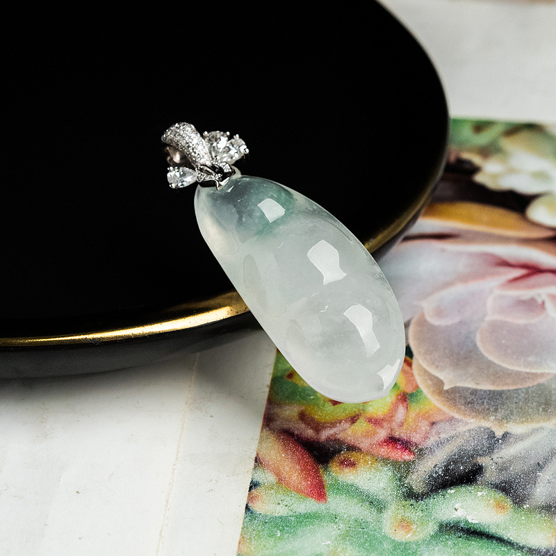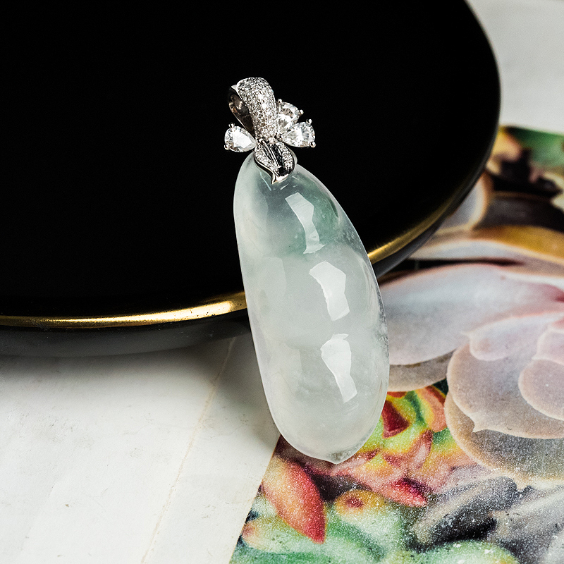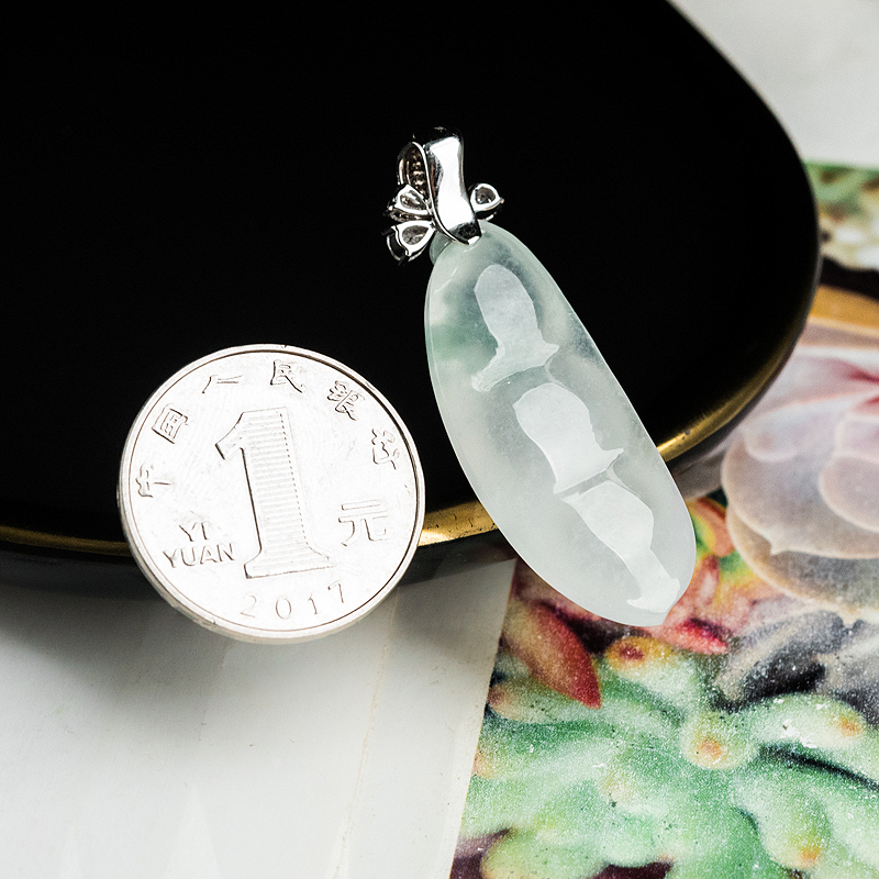 • [名  称] 18K糯冰种飘花翡翠福豆吊坠