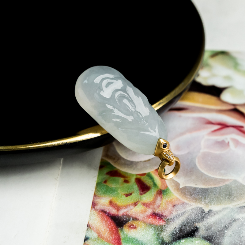 • 18K糯冰种淡晴水翡翠无相佛吊坠