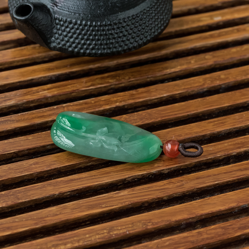 • [名  称] 糯冰种翠绿翡翠幽莲吊坠