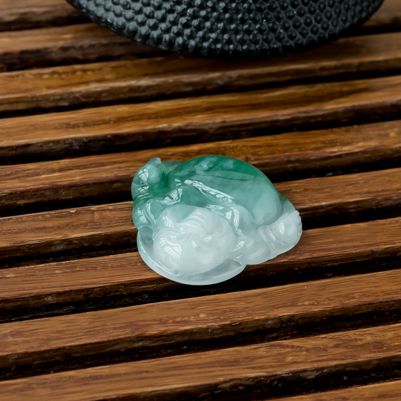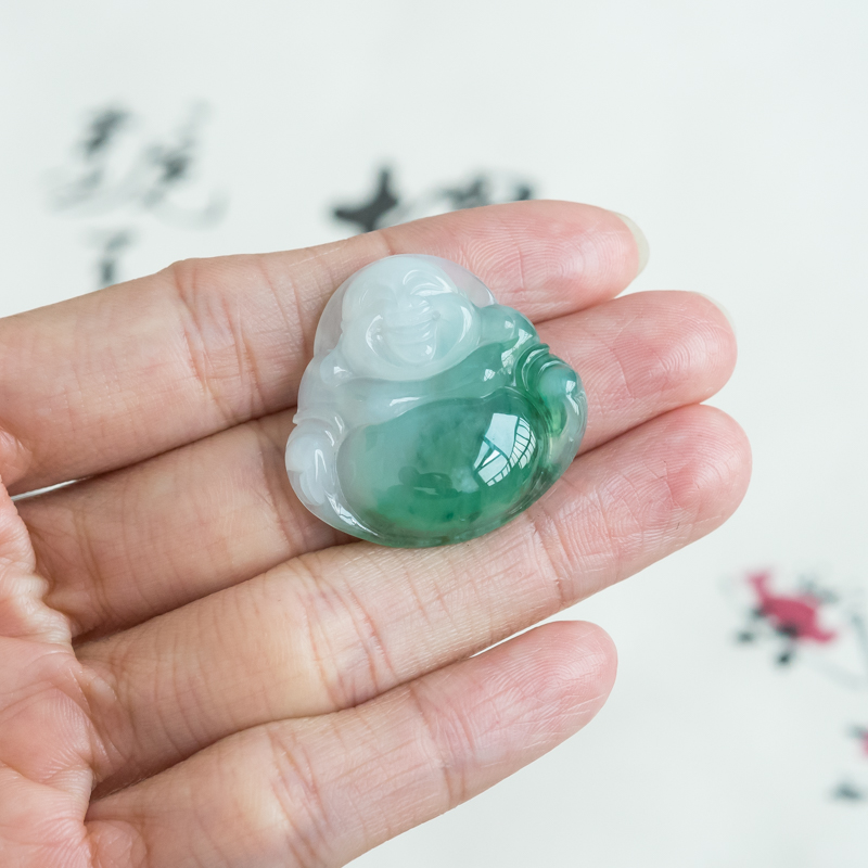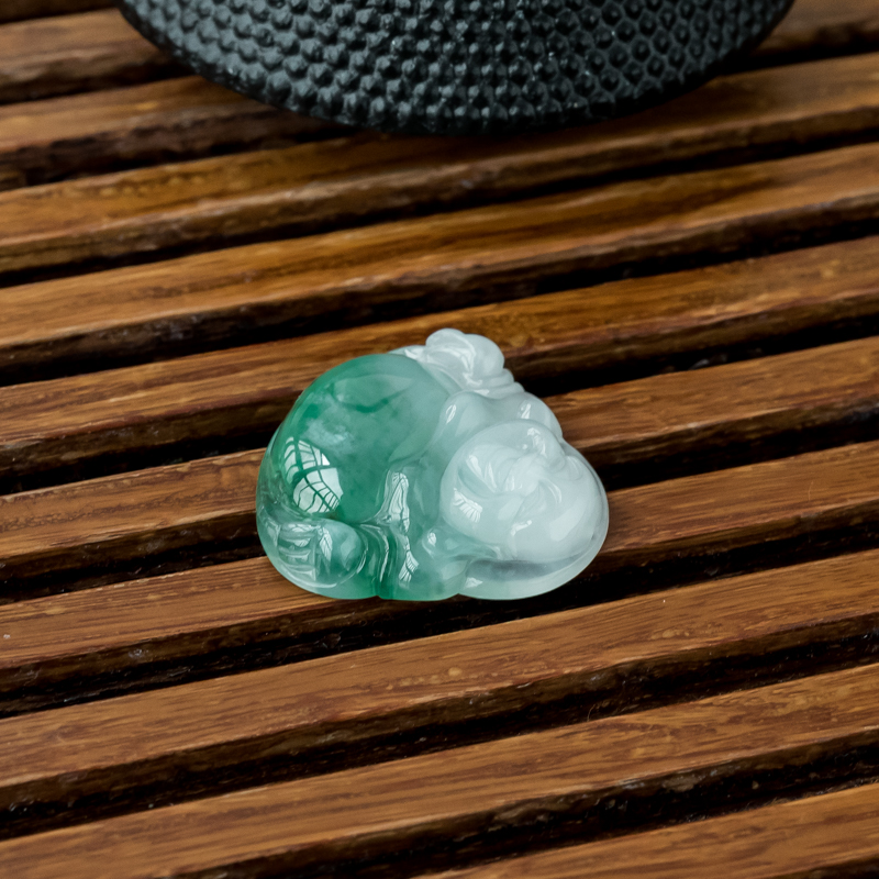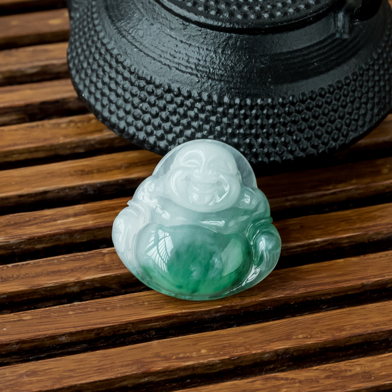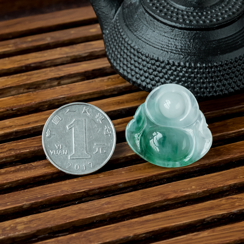 • 糯冰种飘花翡翠弥勒佛吊坠