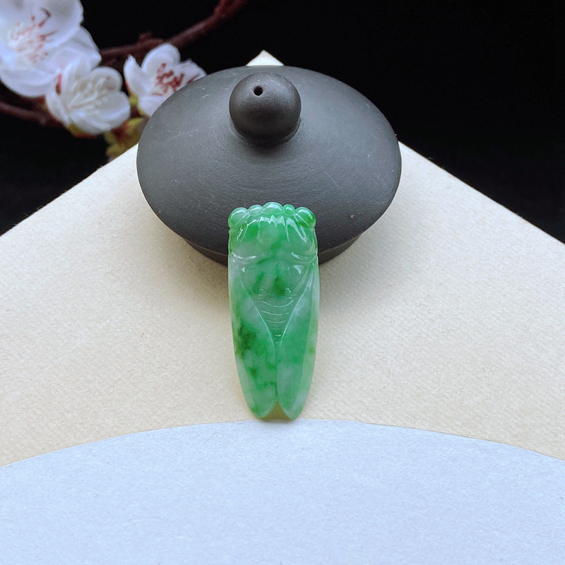 • 糯冰种飘翠翡翠一鸣惊人吊坠